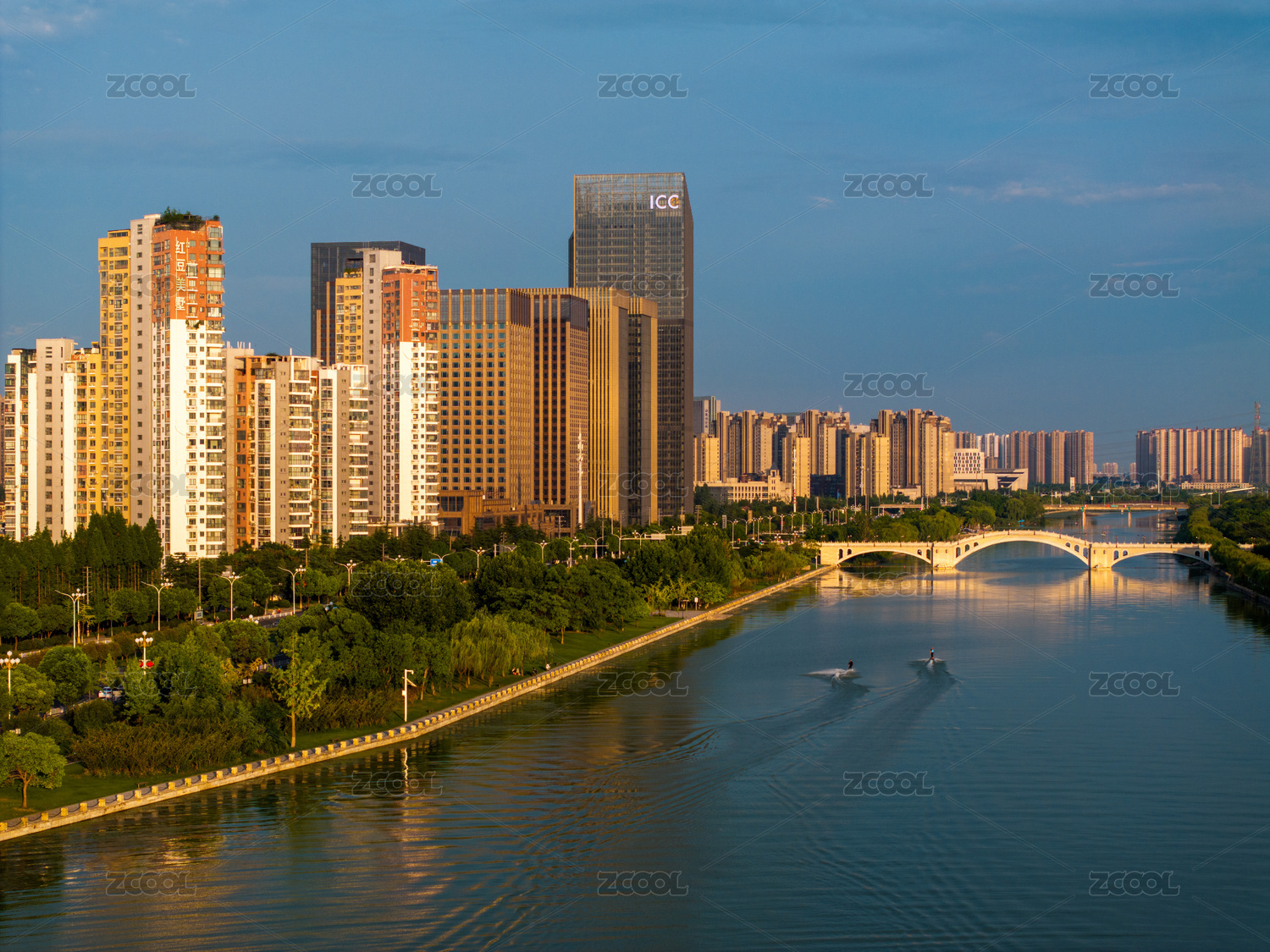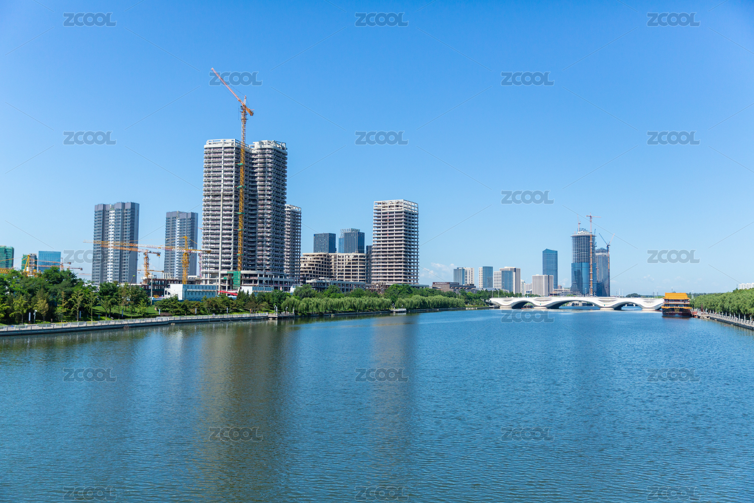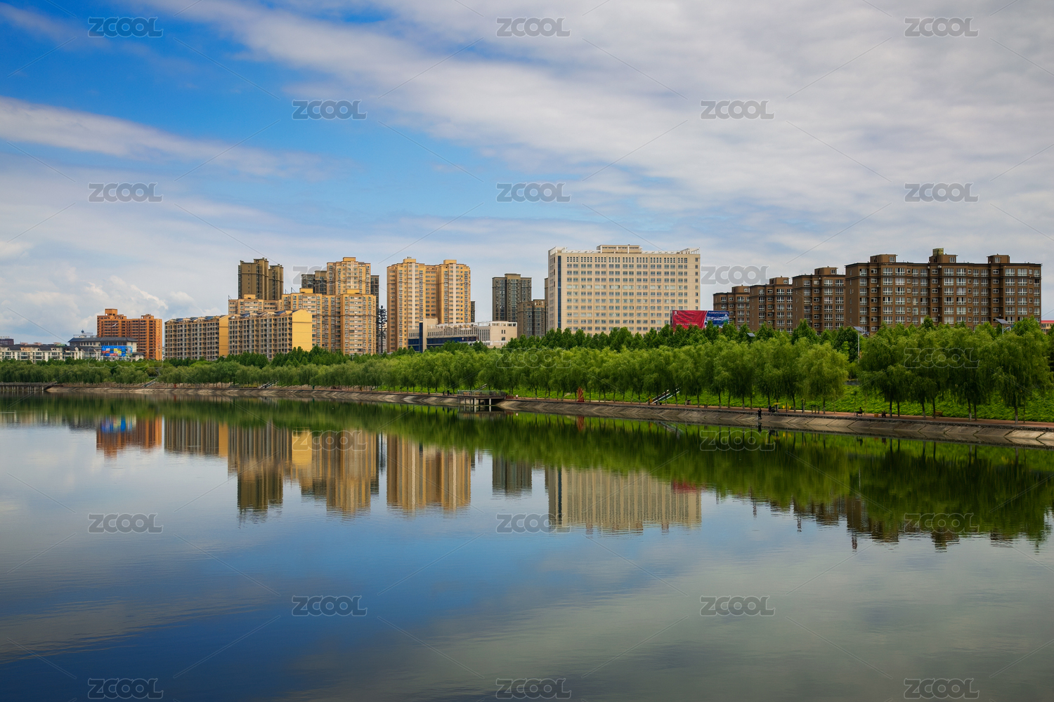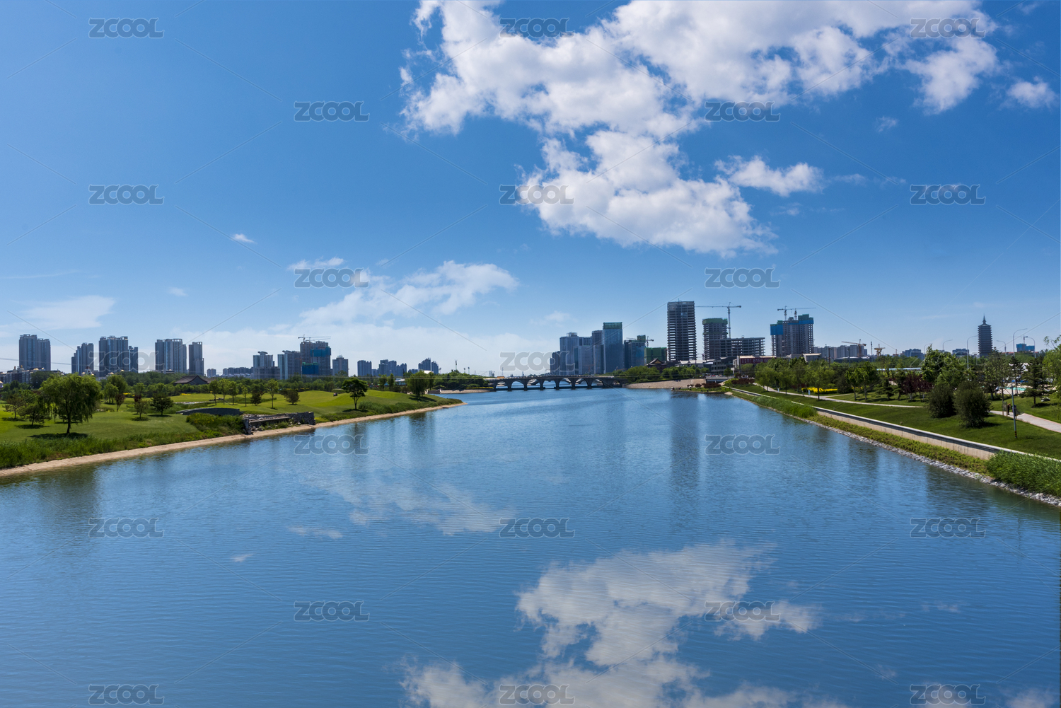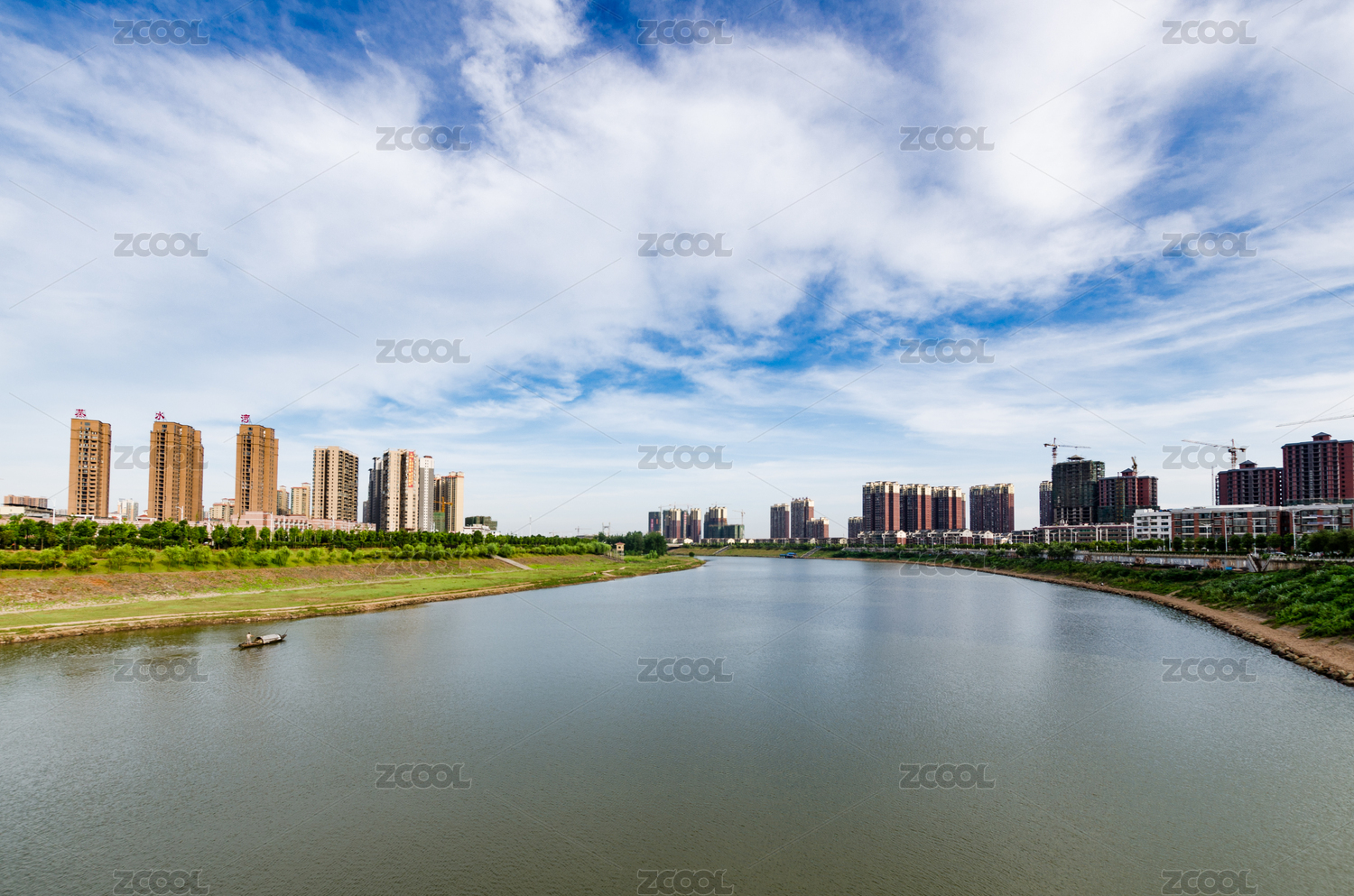 蓝天白云碧水生态园林城市内乡县城湍河城市