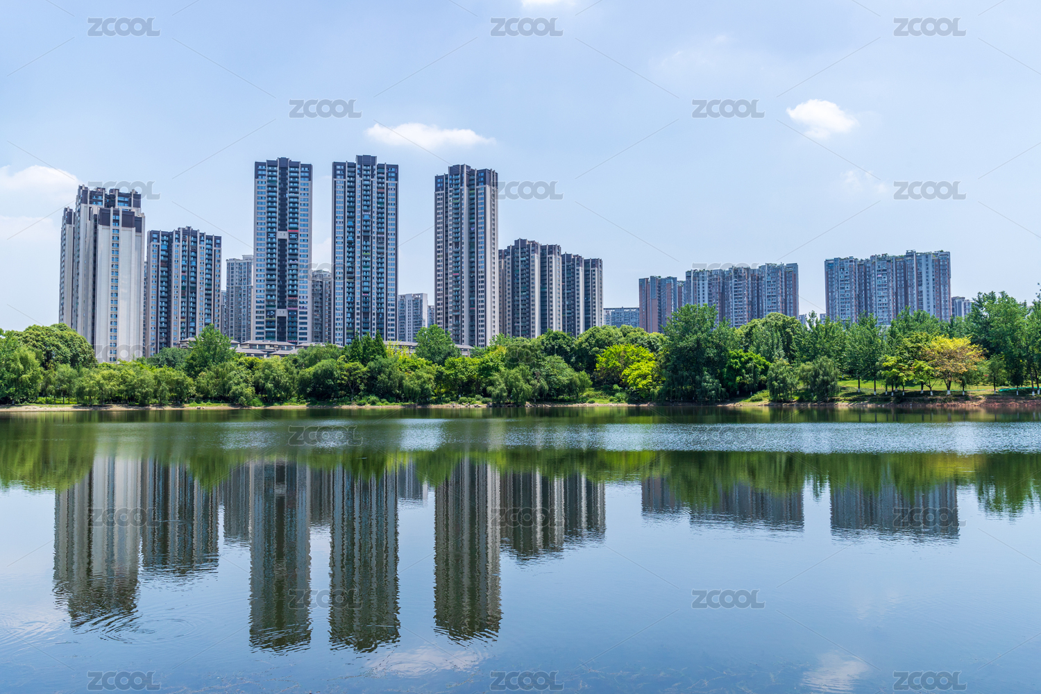 四川,成都,东湖公园,湖泊,天空,湖水,天际线,城市,景观,房地产