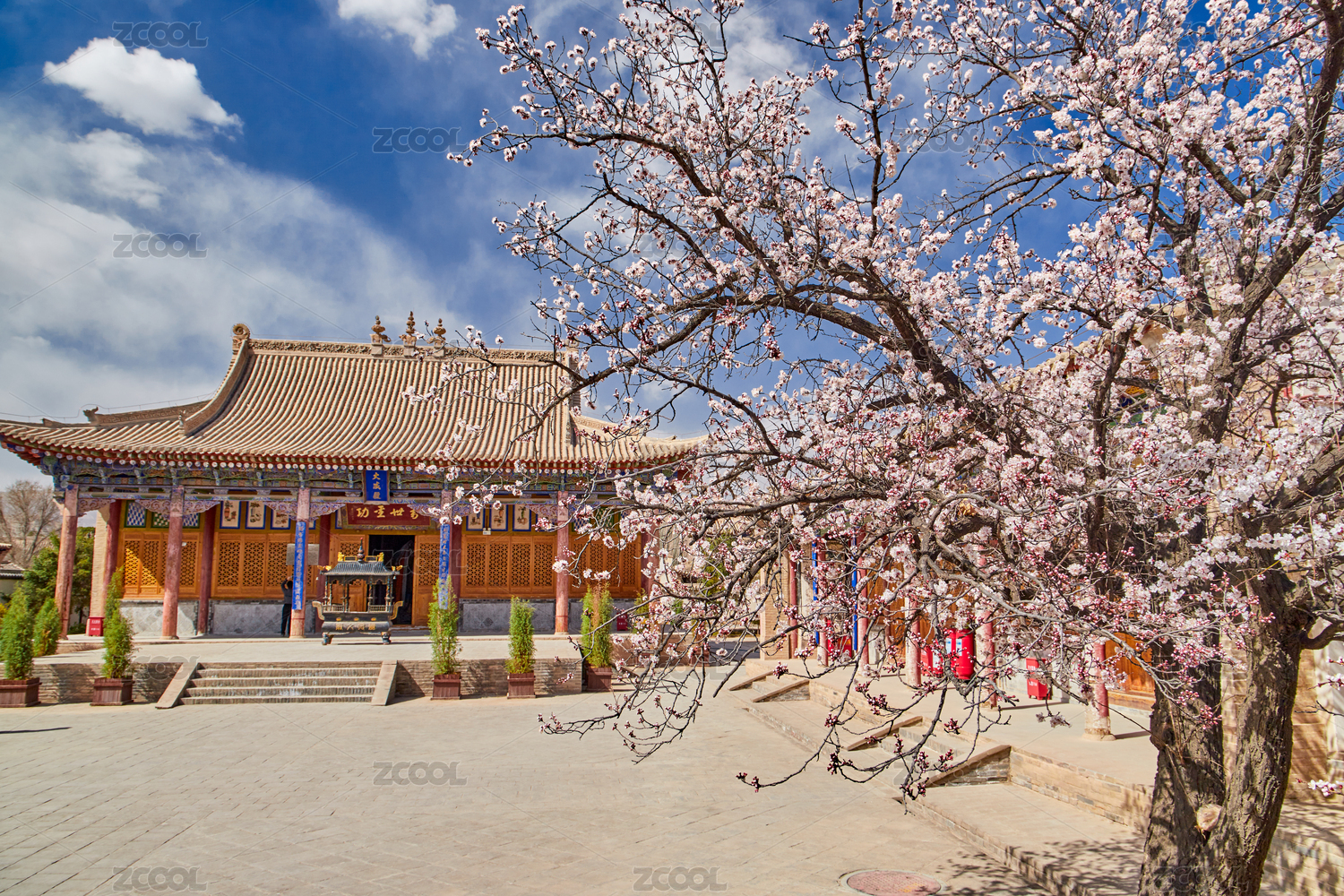 中国云南昆明棋盘山棋盘宫百年古树梅花盛开