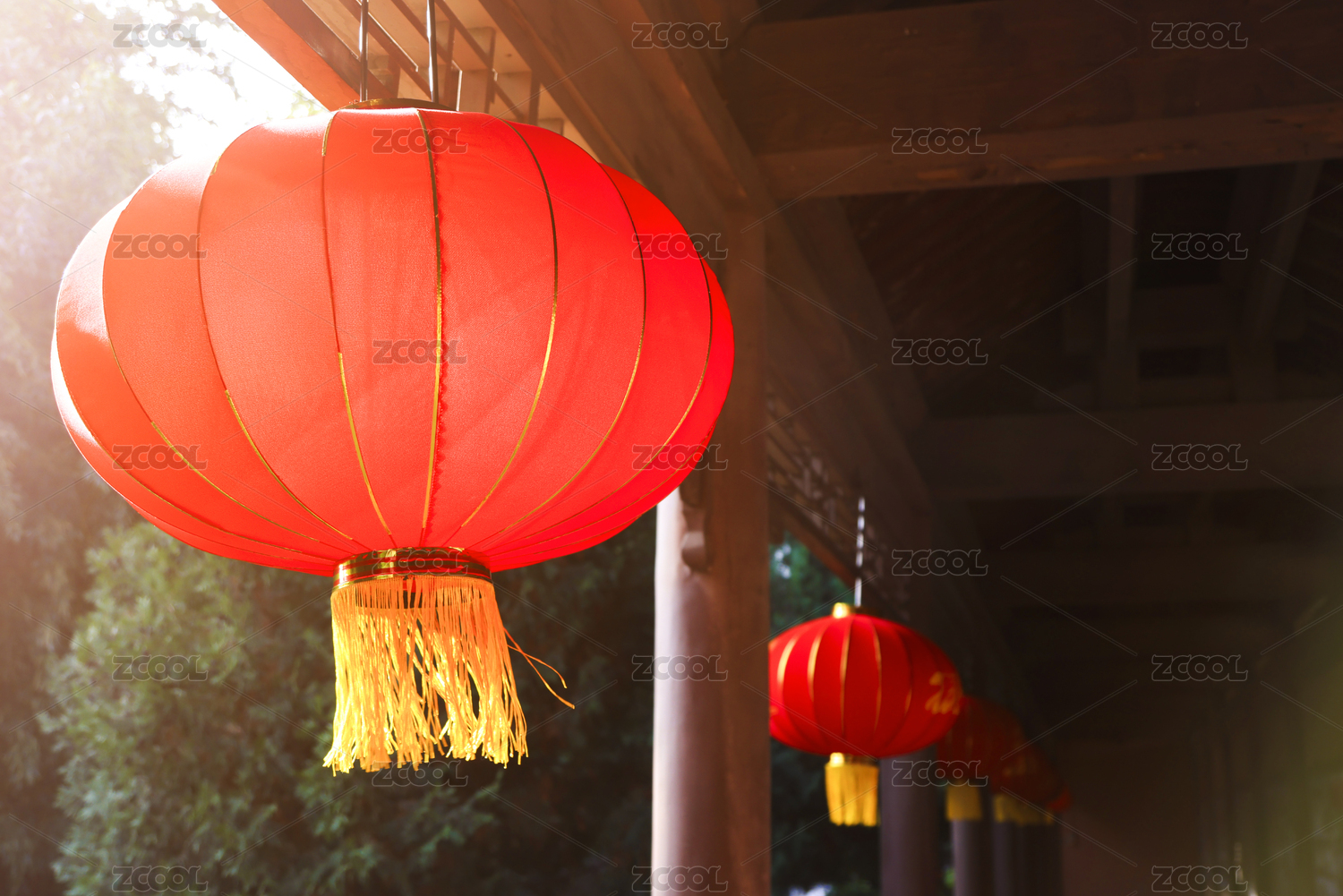 宁波七塔禅寺藏经阁前中国传统红色祈福缎带