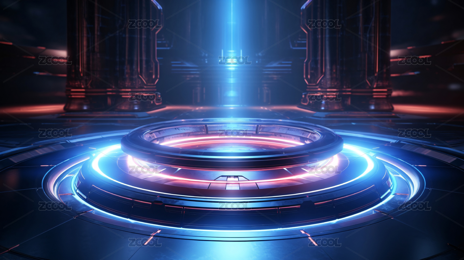 未来感蓝色霓虹圆形平台