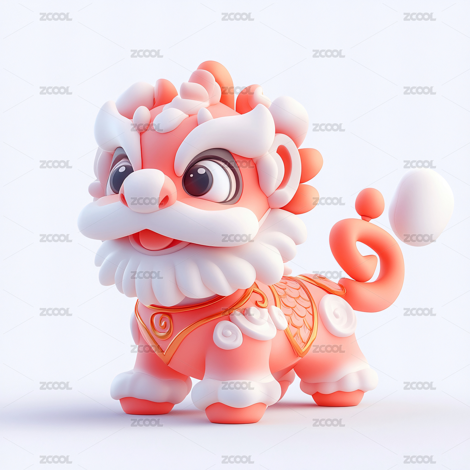 3d卡通中国传统春节新年舞狮国潮醒狮插画