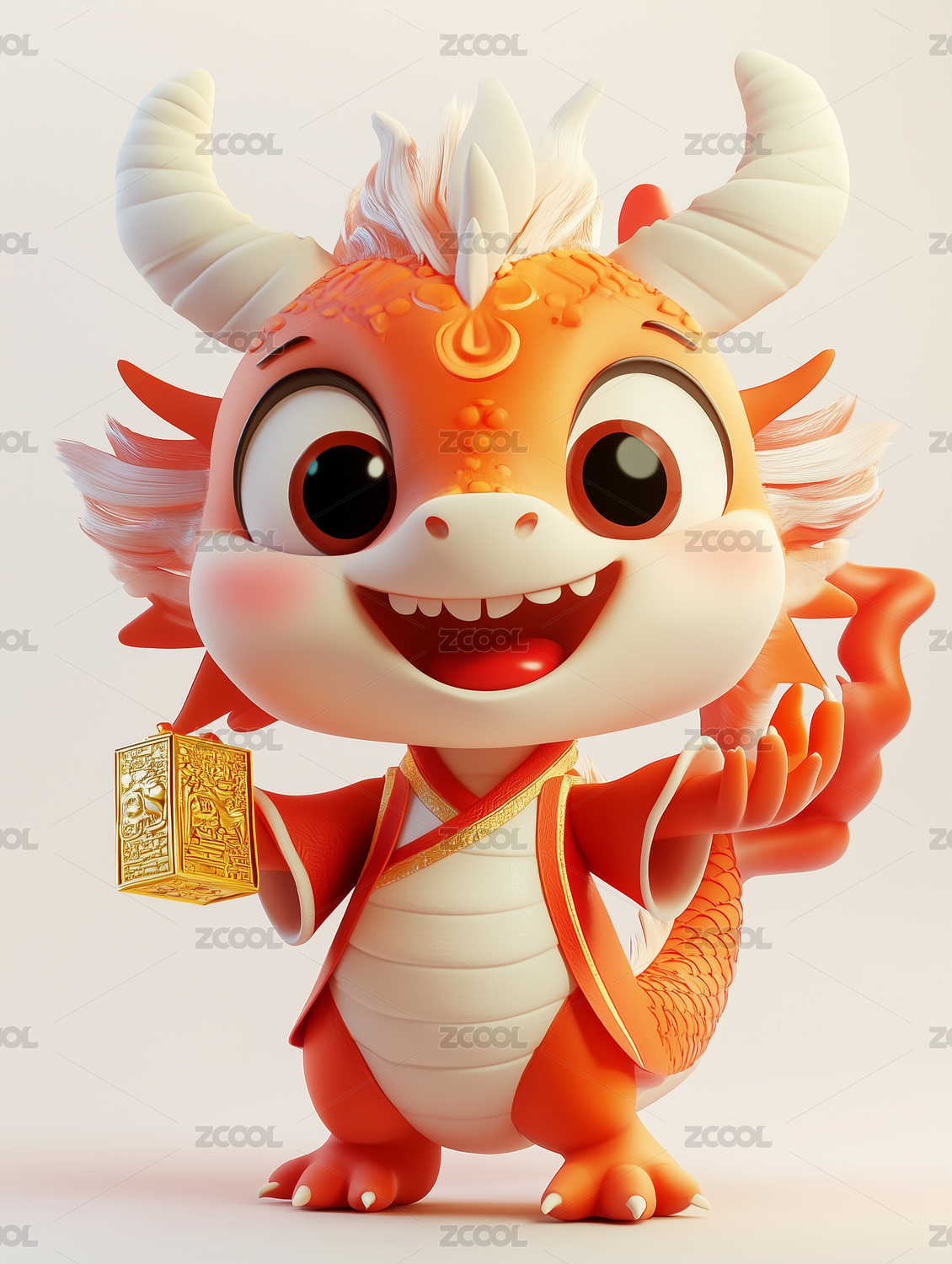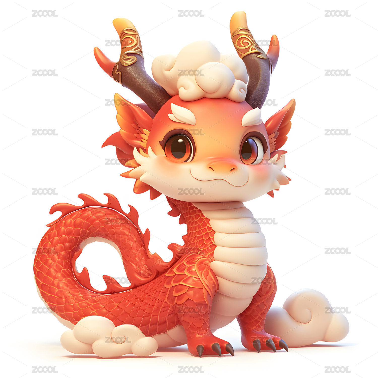 可爱的卡通IP角色中国龙宝宝唯美风格