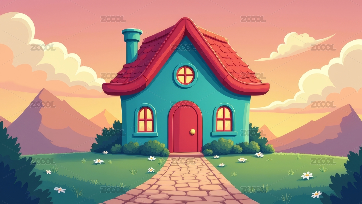 插画,房子,插图,自然,旅途,设计,家,绿色,旅行,树叶