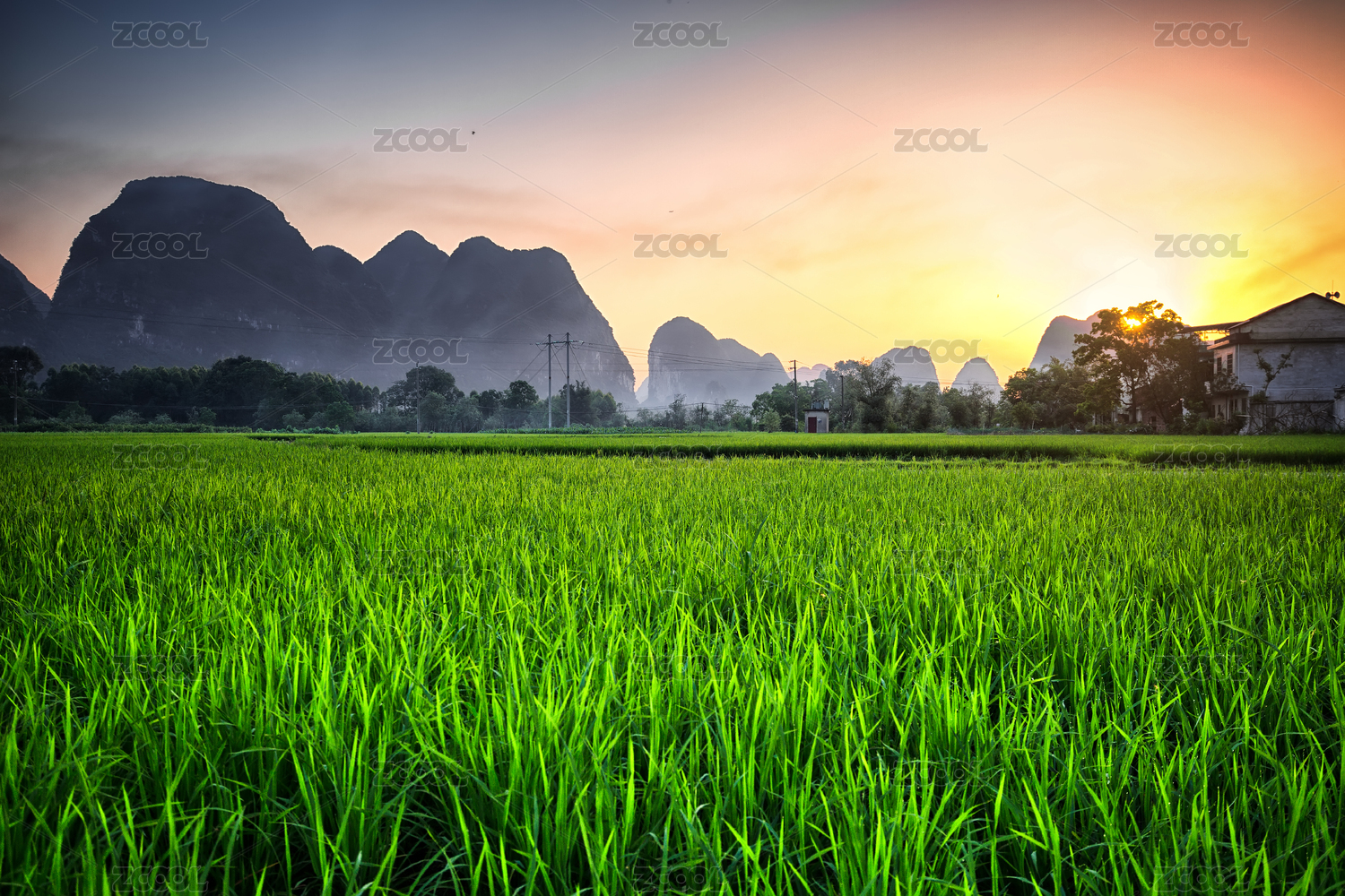 中国桂林阳朔遇龙河两岸稻田丰收山水风光