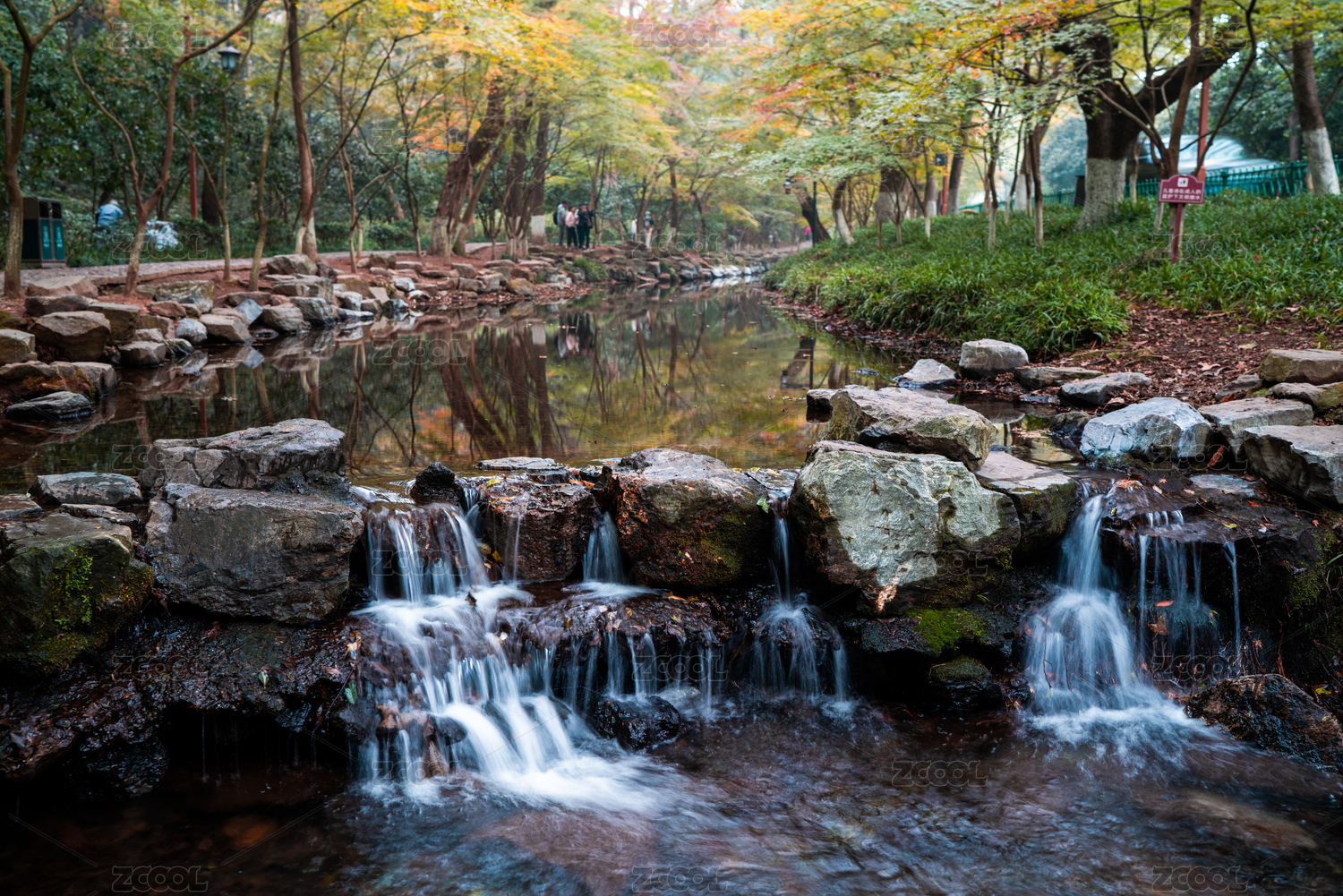 中国浙江杭州九溪烟树,落满枫叶的小溪