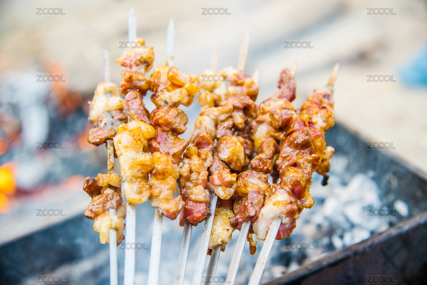 烤肉串,羊肉串,烤串,串肉签,格子烤肉,无人,宵夜,夜市,烧烤,牛肉串
