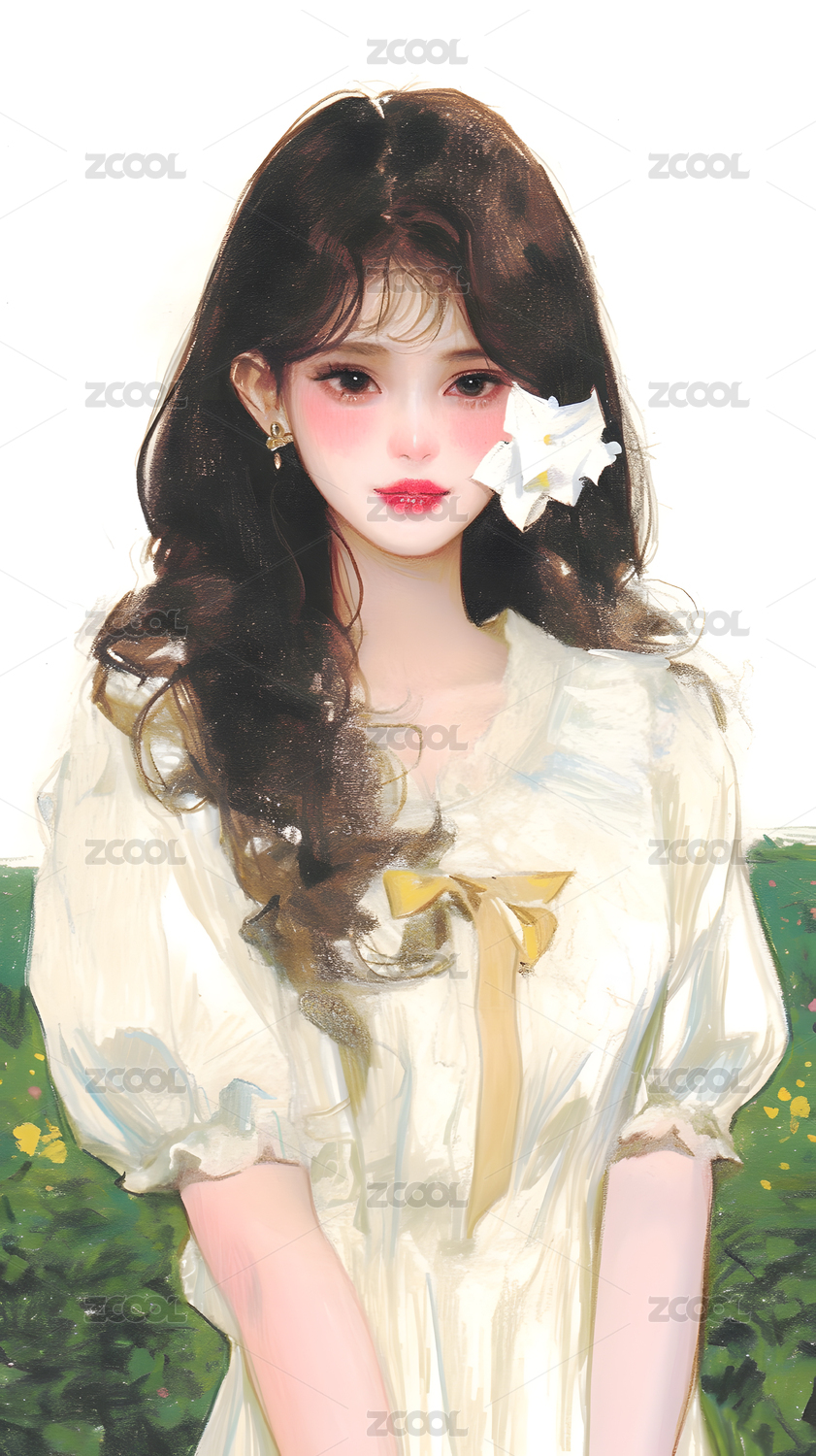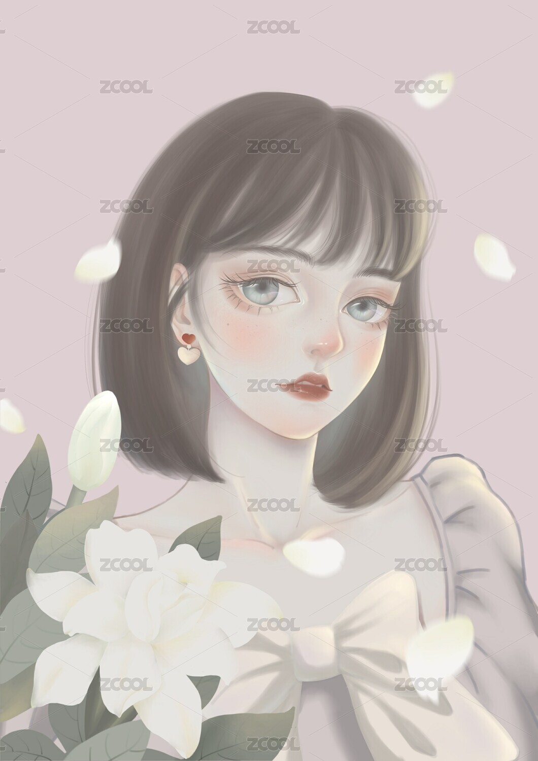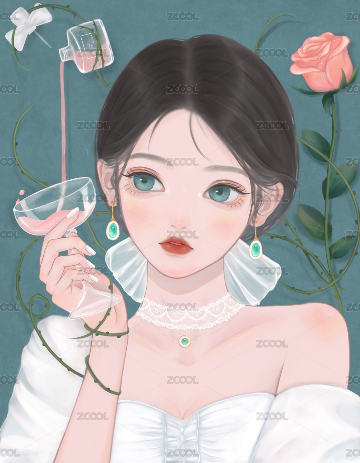 清新治愈系玫瑰花可爱少女人物 板绘仿水彩
