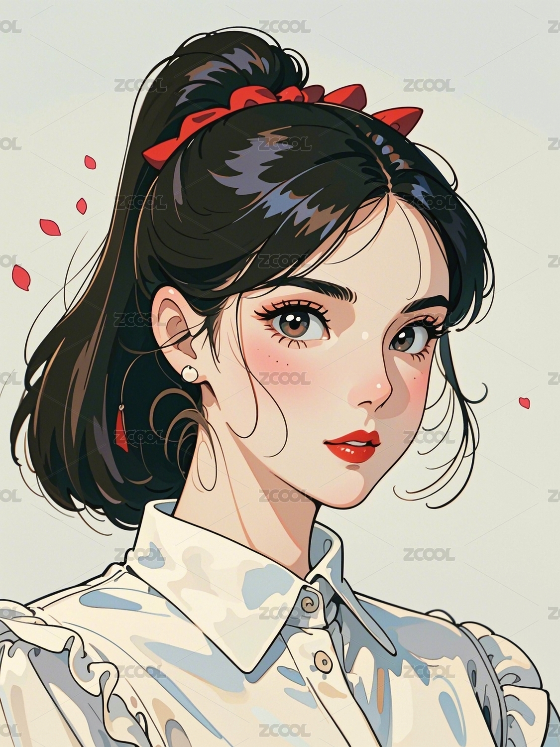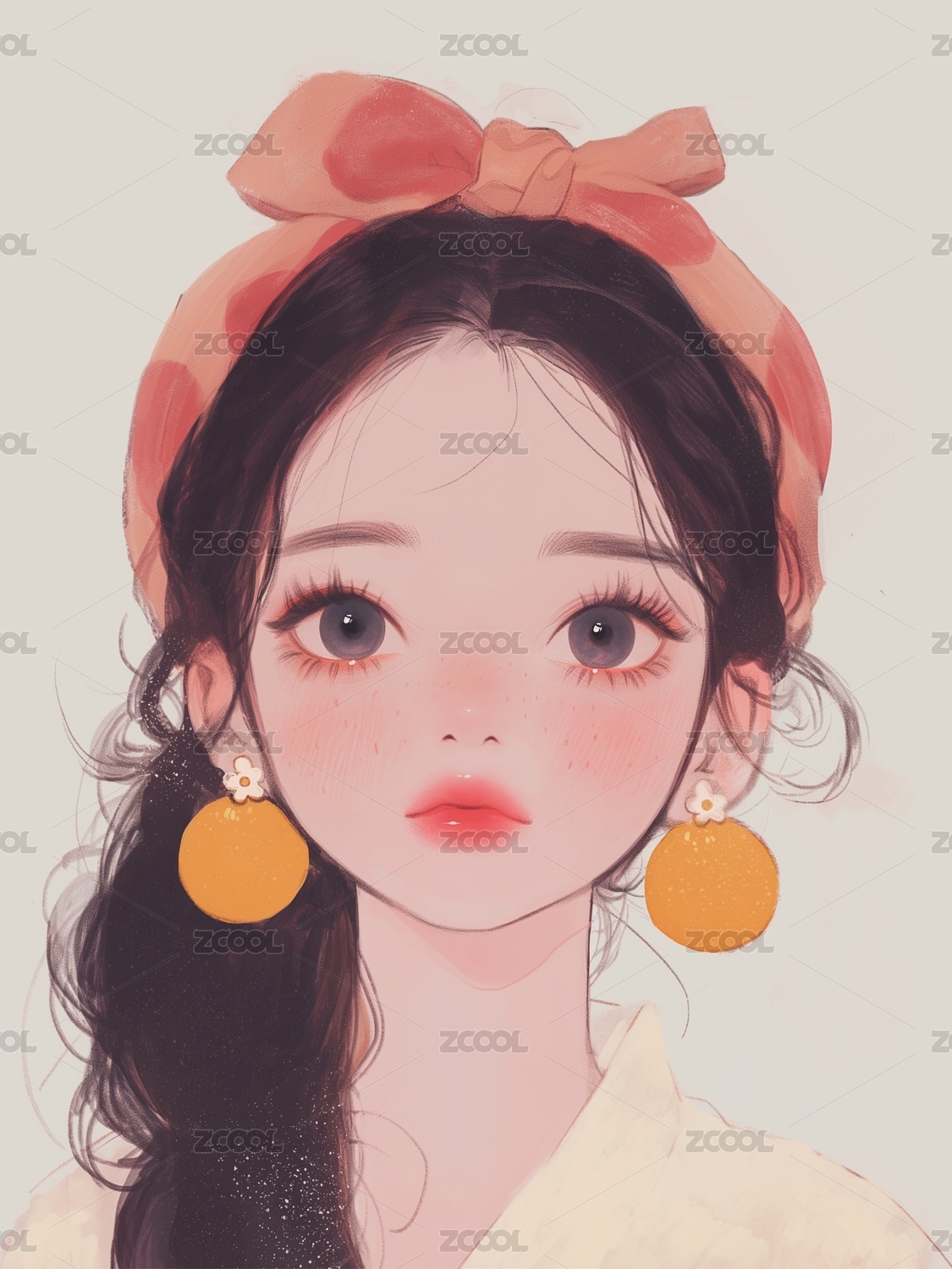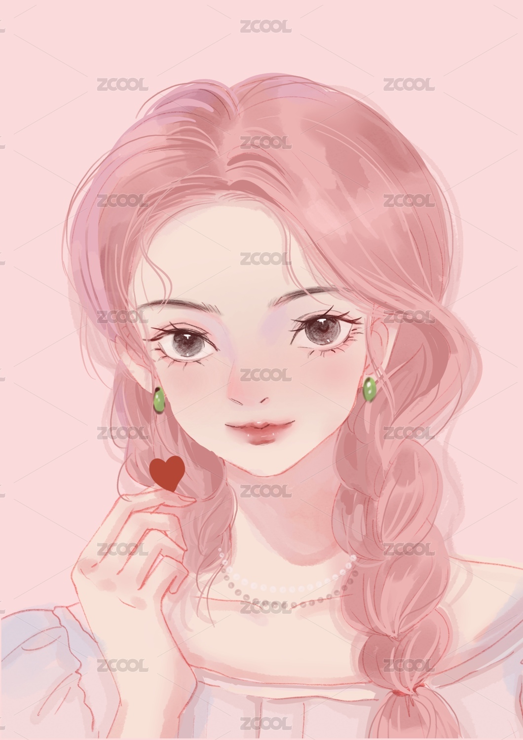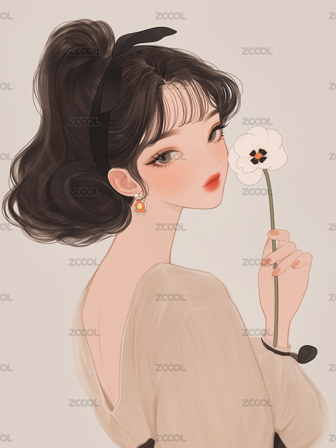 郁金香花朵蝴蝶结麻花辫温柔少女插画
