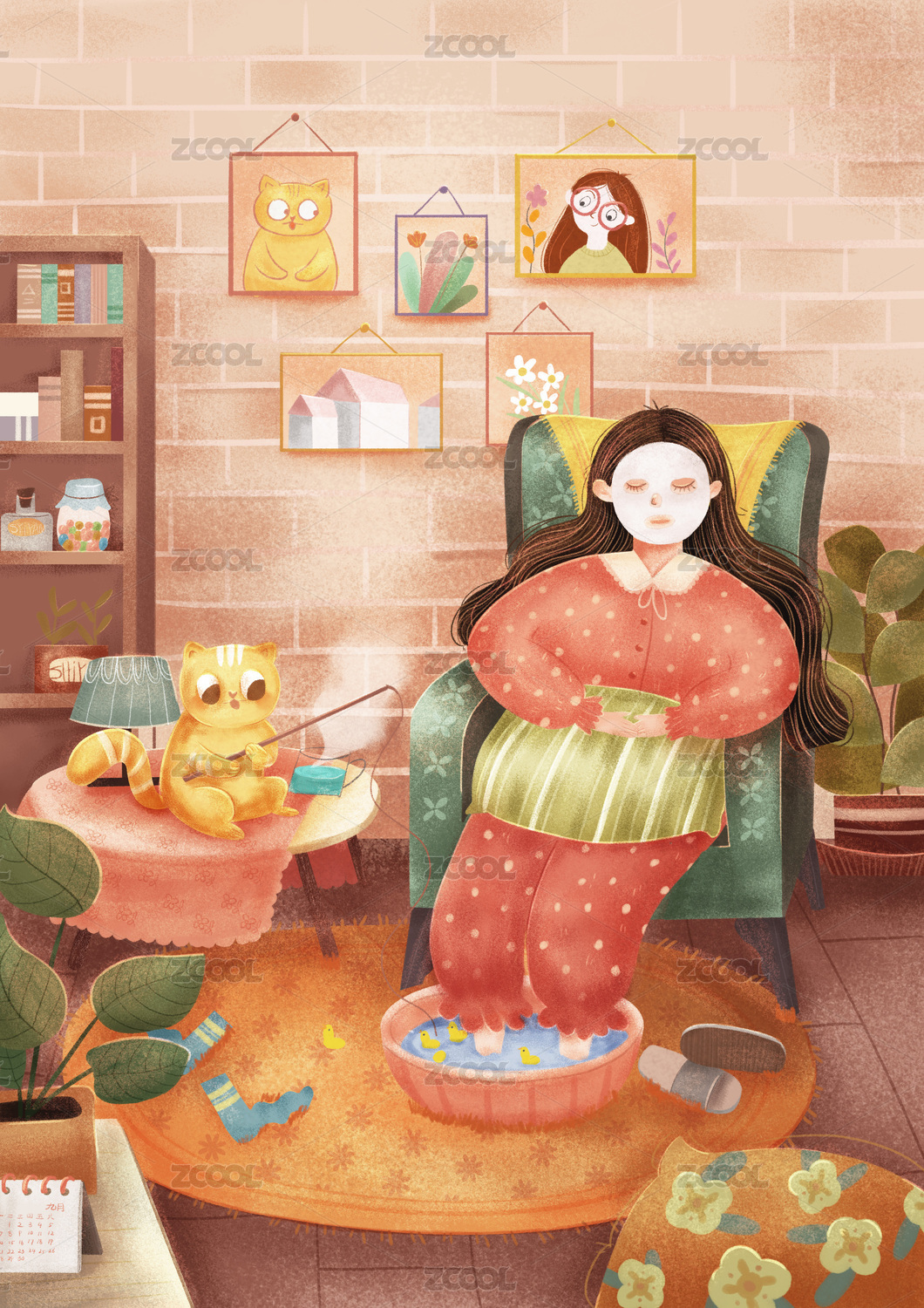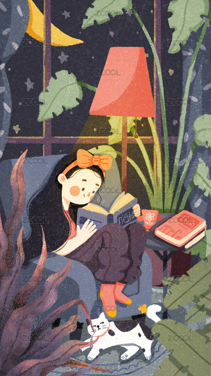 复古少女插画居家生活方式