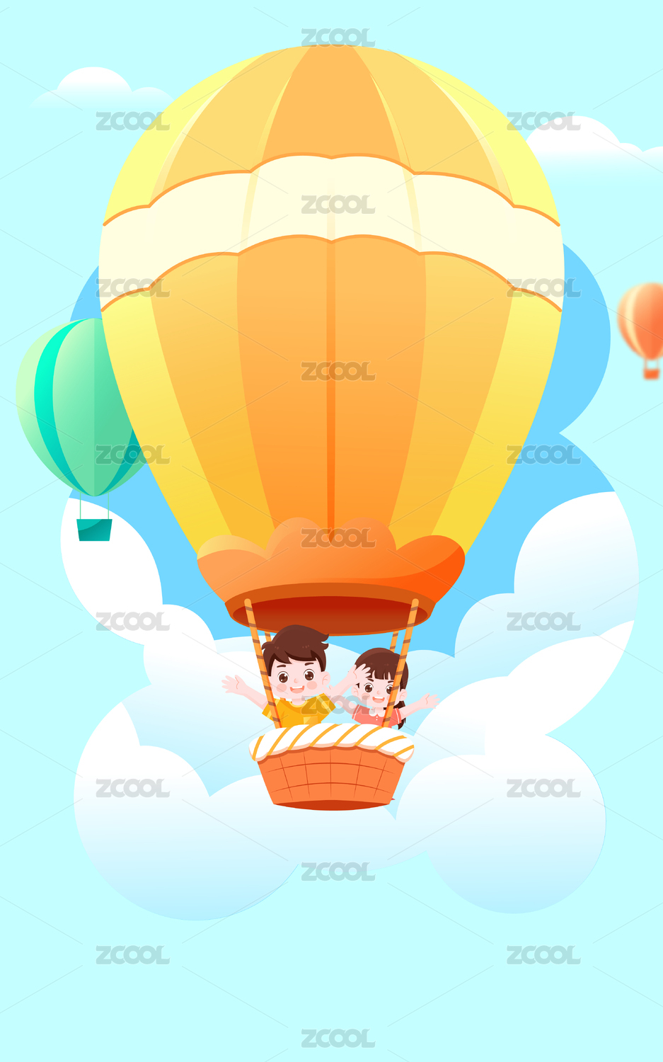 儿童节乘坐热气球插画