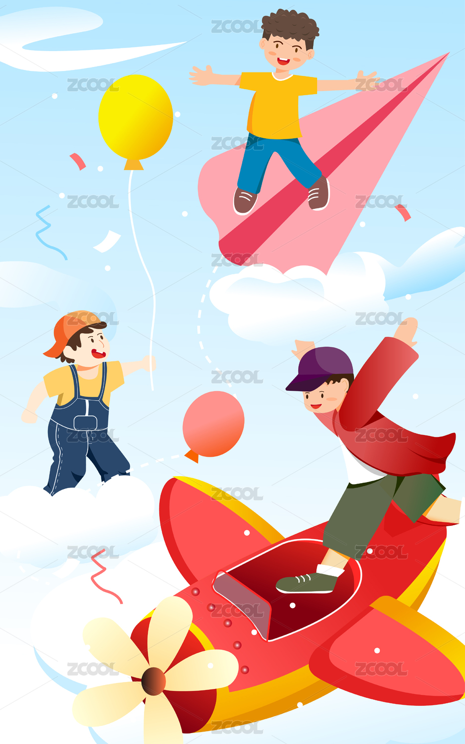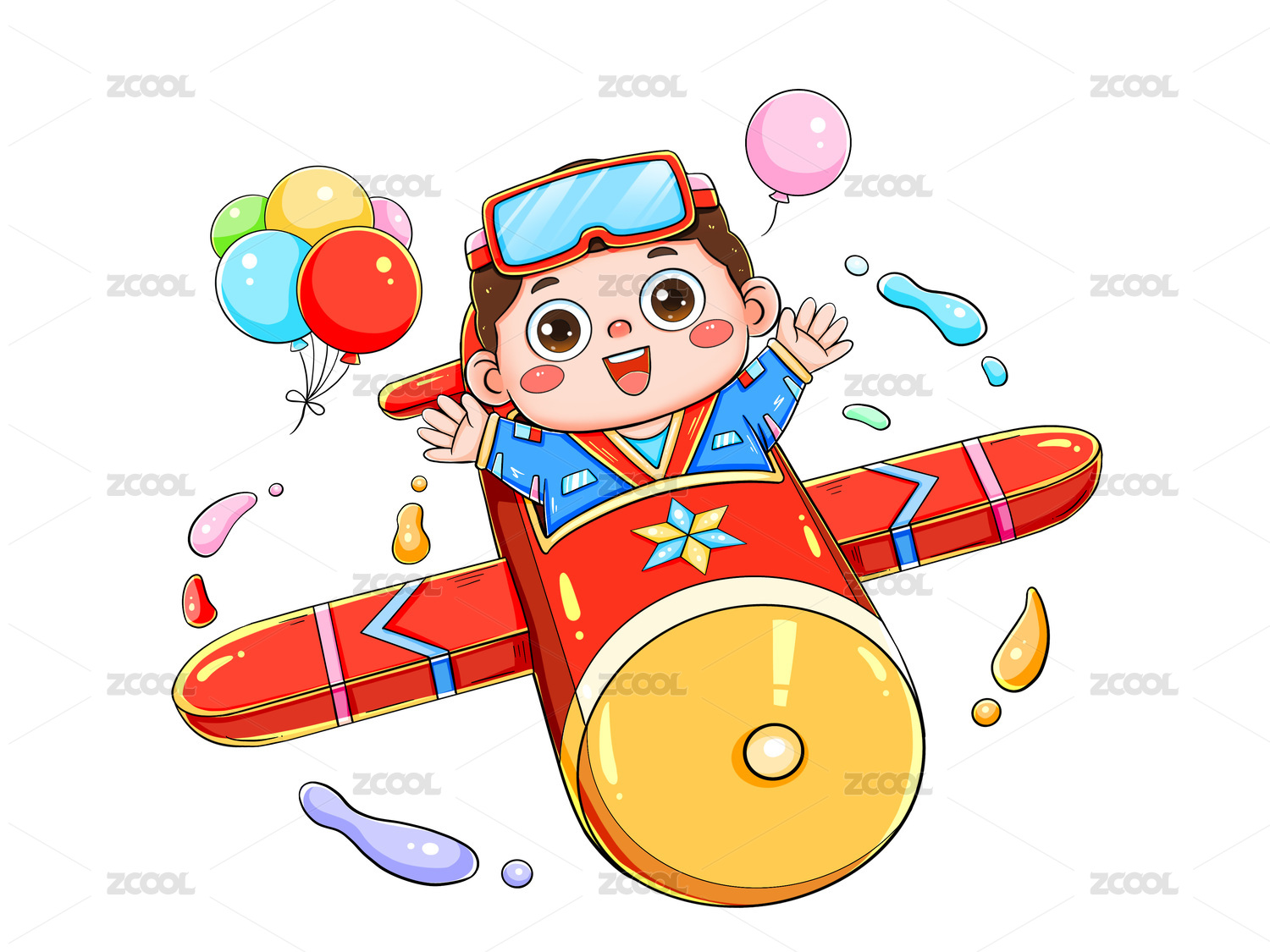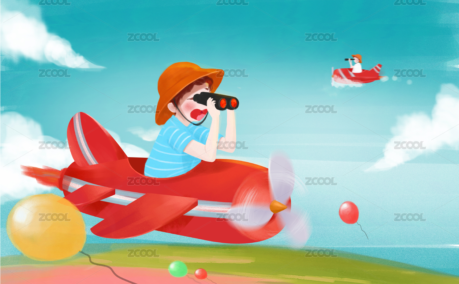 卡通开飞机的小孩