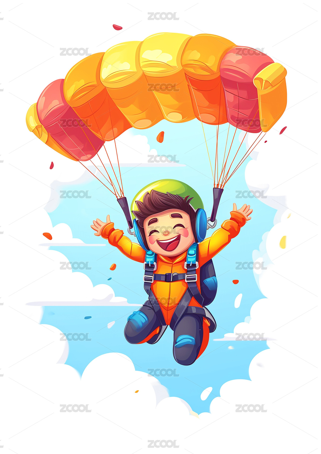 一个运动员正在跳伞卡通插画