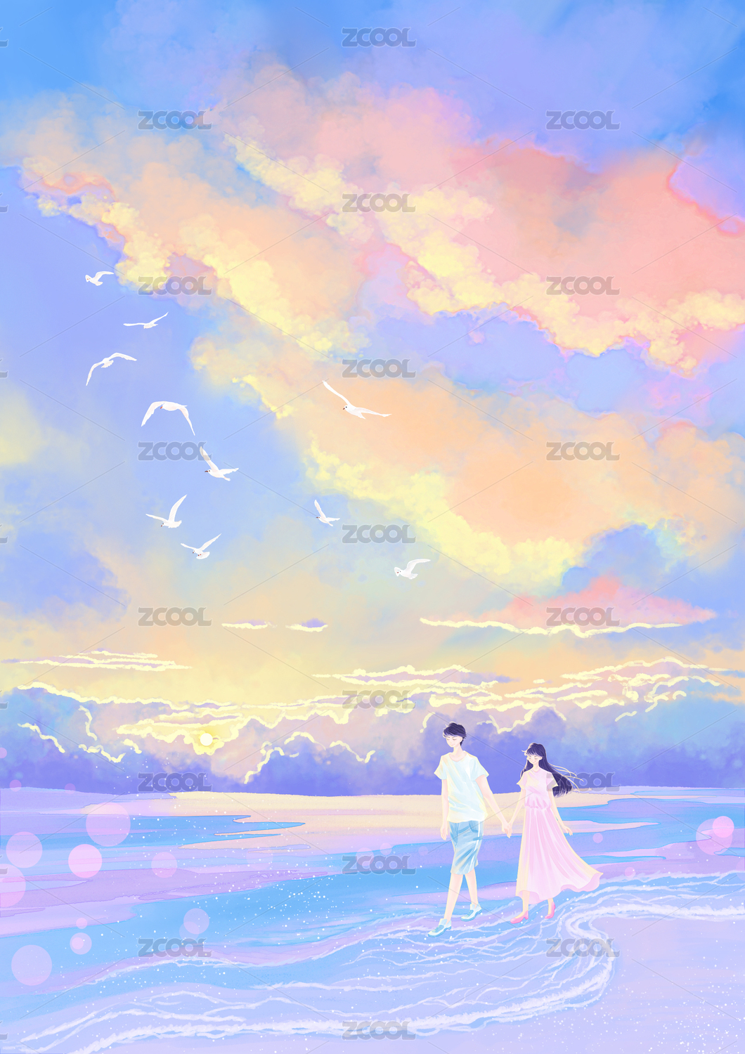 情侣插画 场景插画 一起去郊游