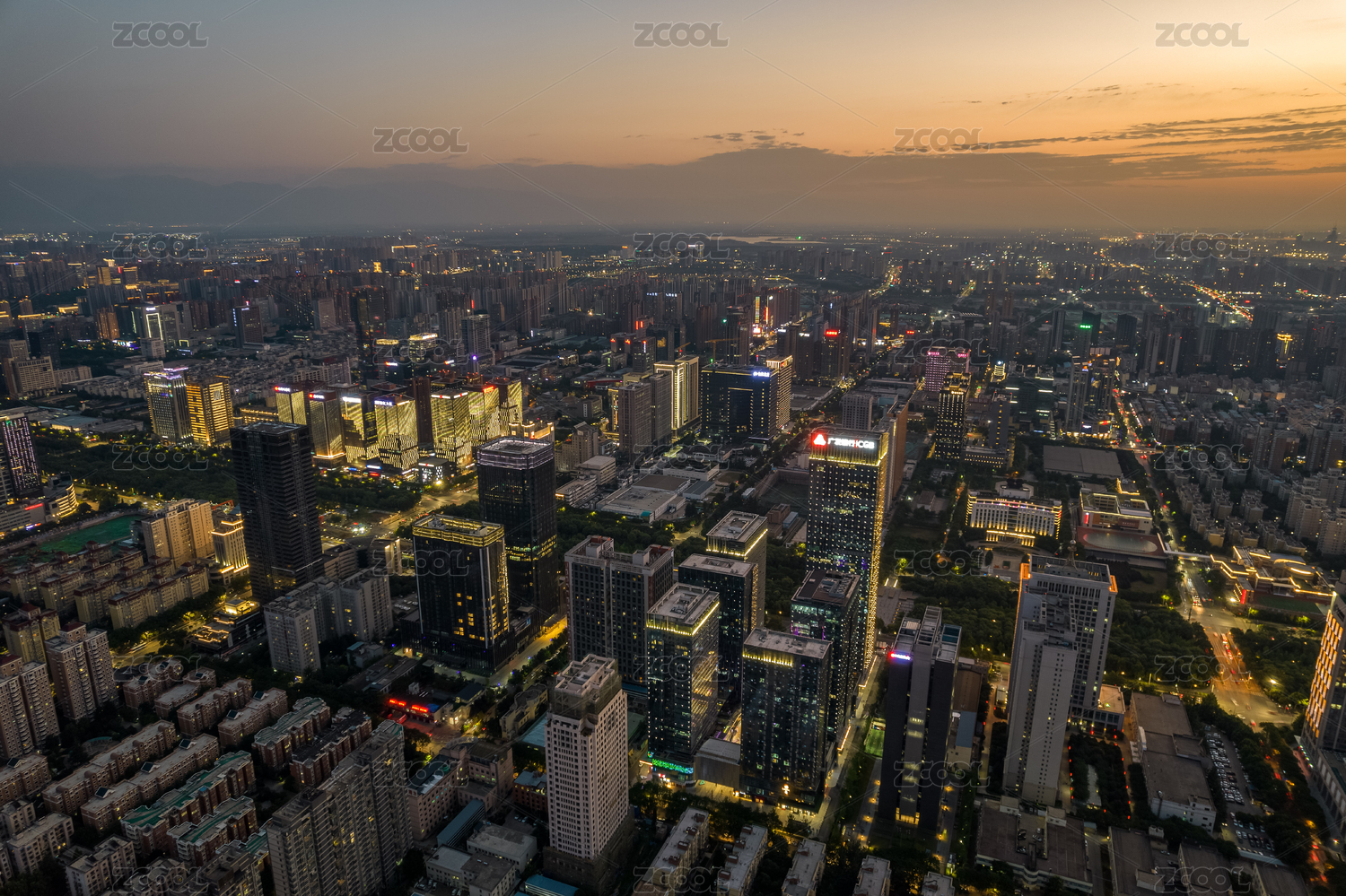 中国辽宁沈阳市府恒隆广场和天际线夜景航拍