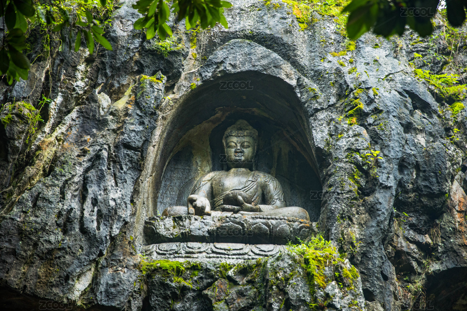 石壁上雕刻的佛像
