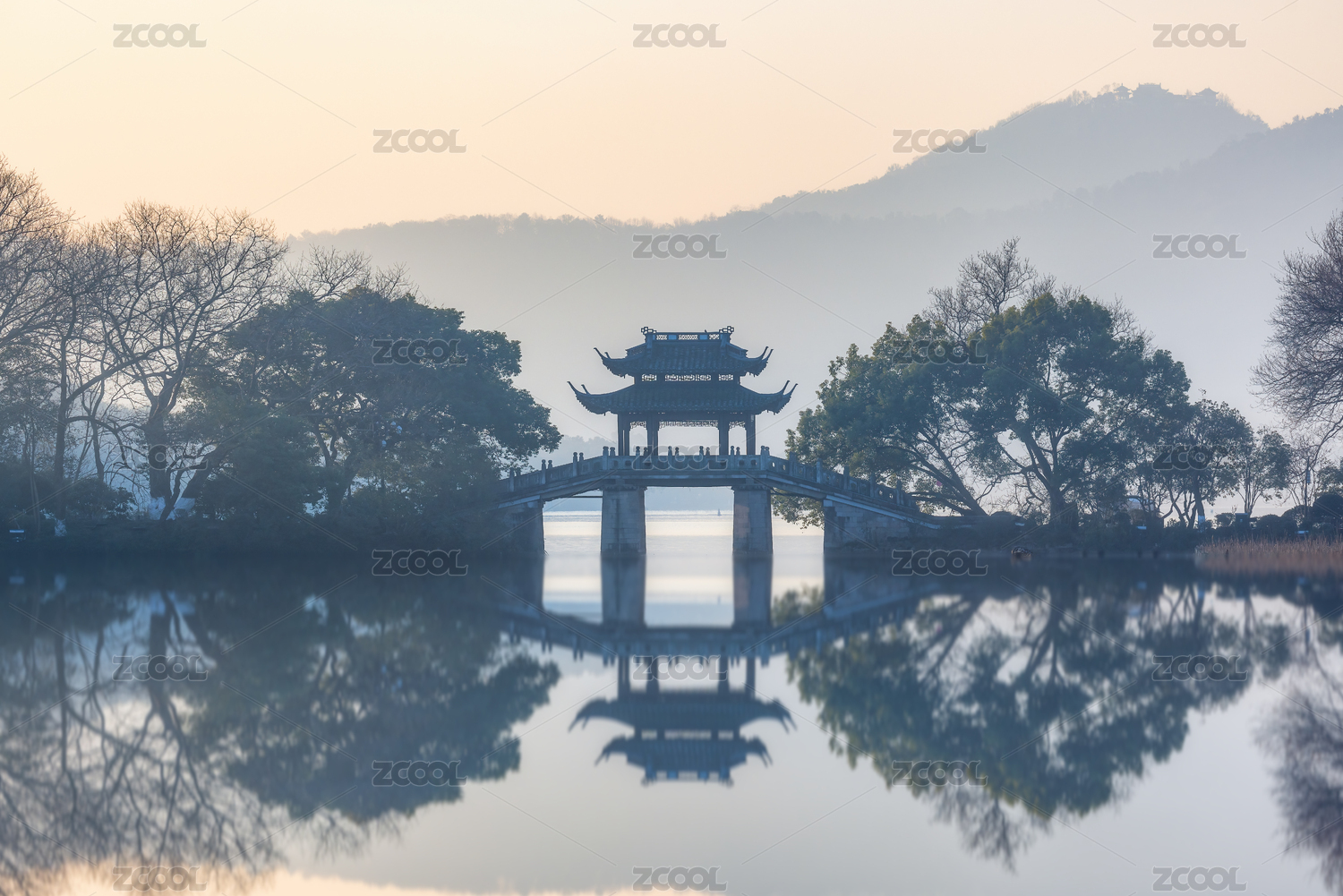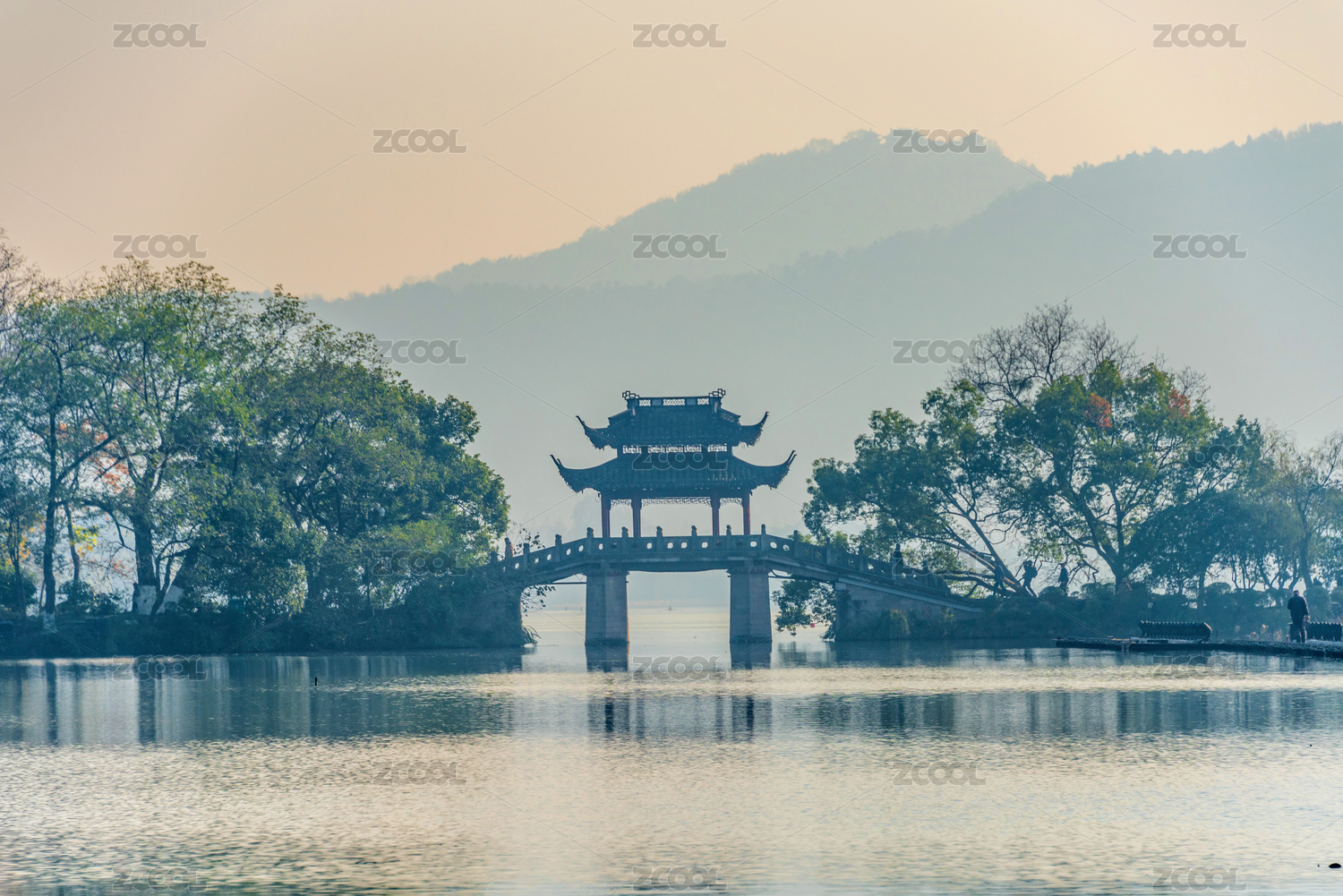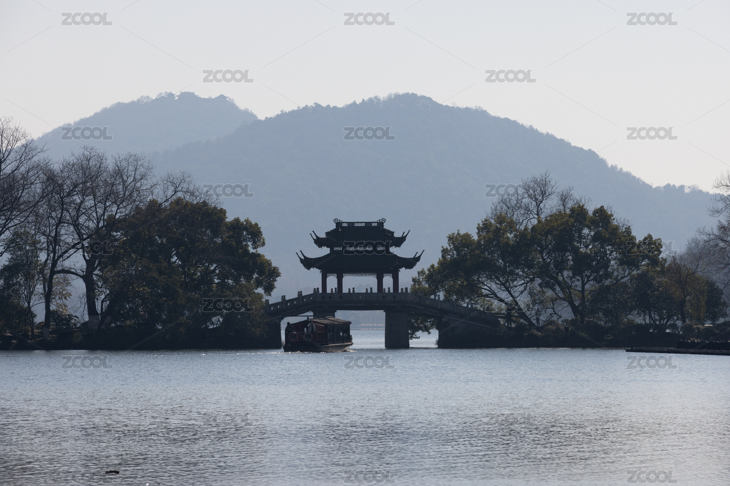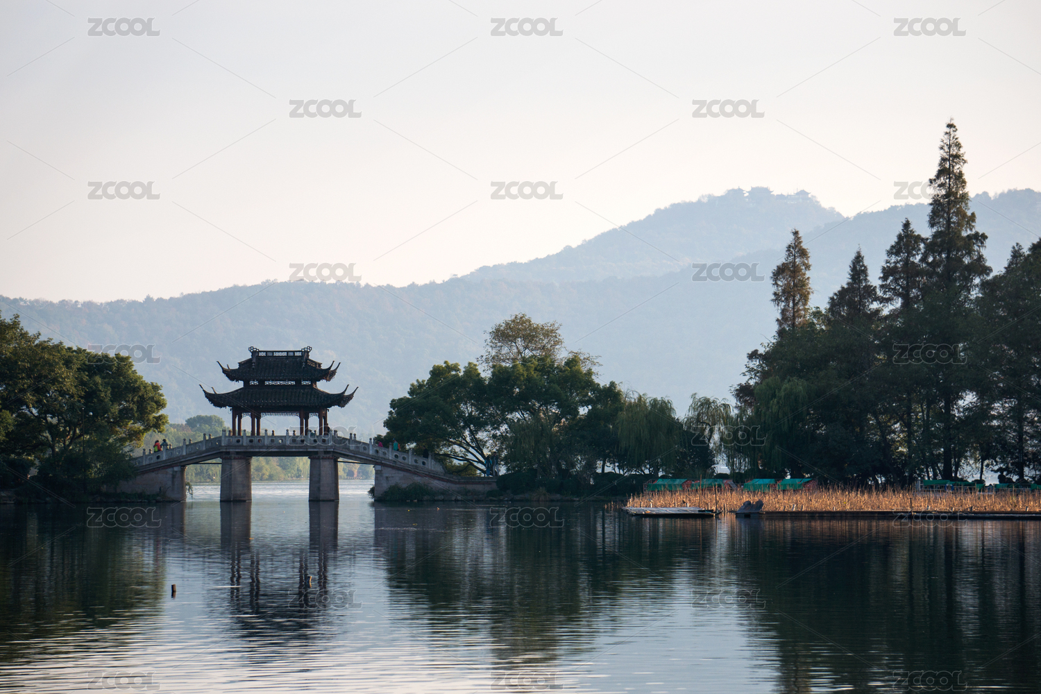 中国浙江杭州西湖曲院风荷玉带桥自然风景