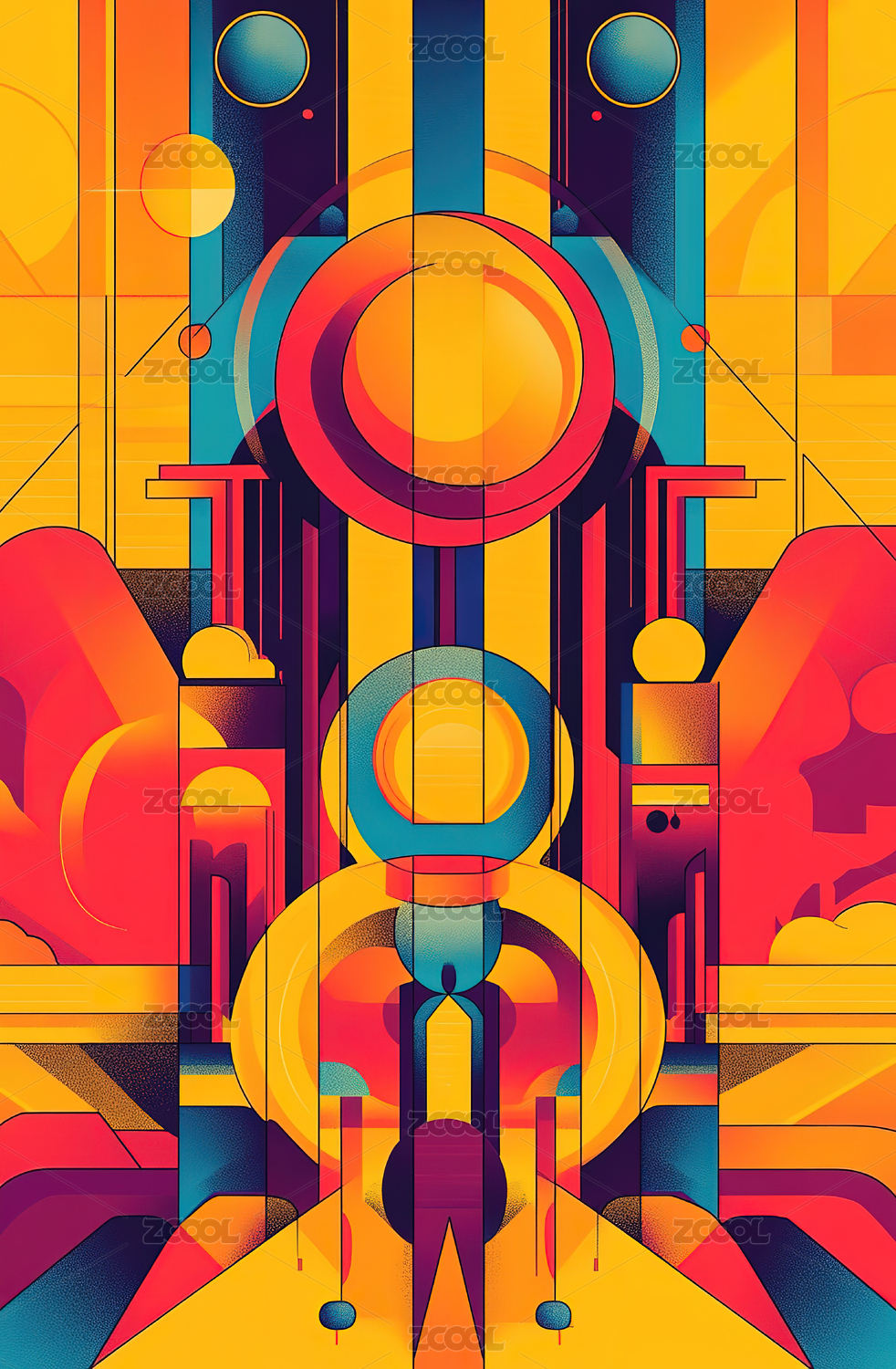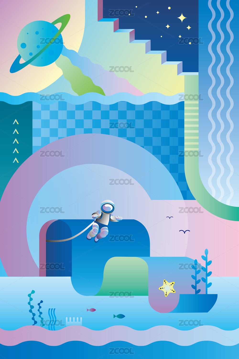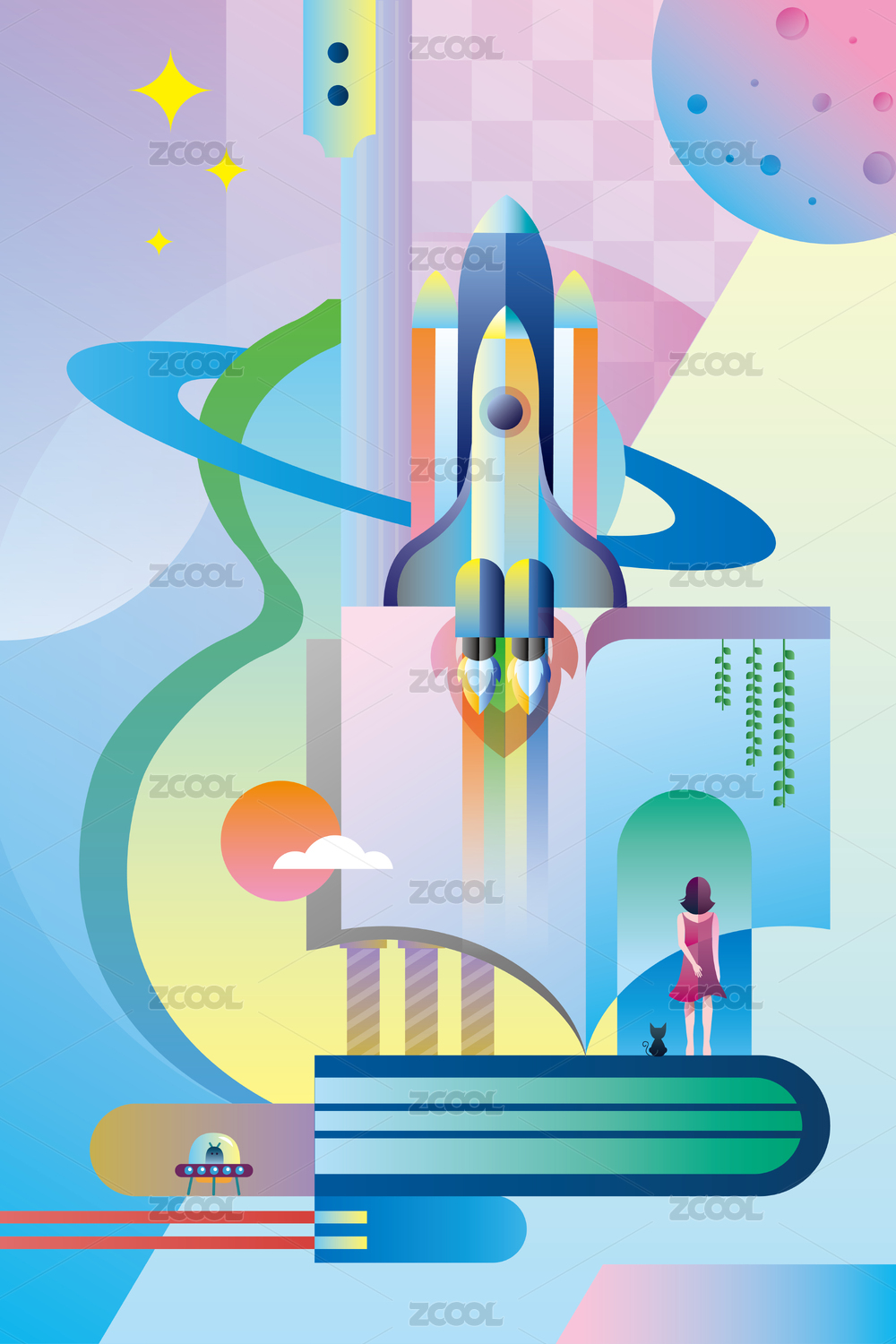 插画,抽象,几何,少女,猫,宇宙,概念,星球,繁星,魔方