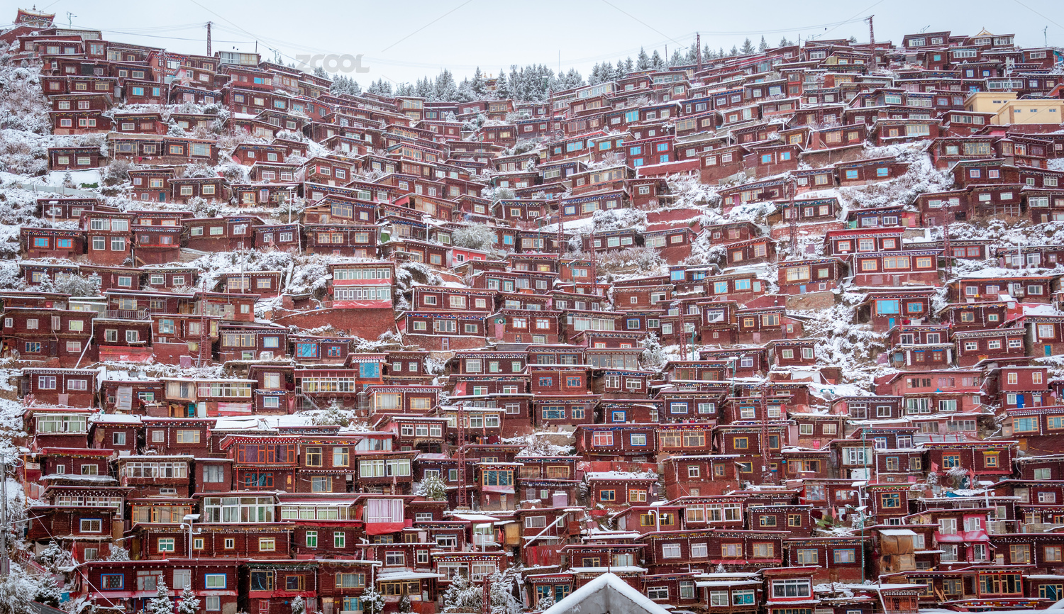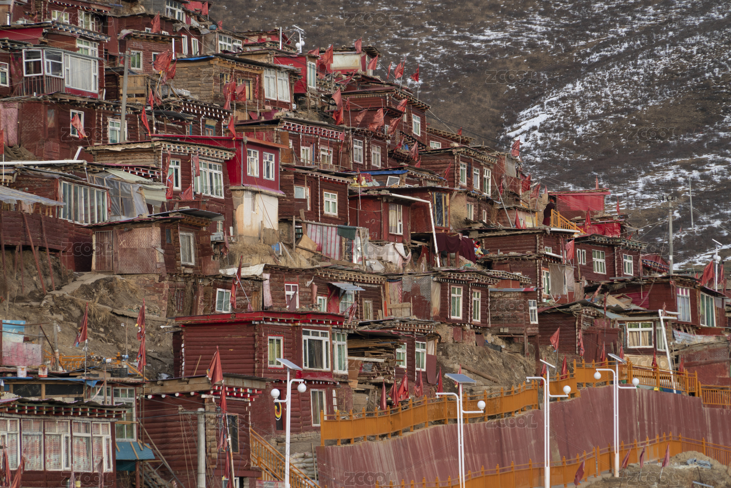 东亚,中国,亚洲,佛学院,佛教,佛舍,冬天,冬季,喇荣寺五明佛学院,四川