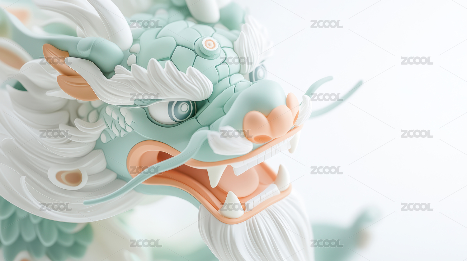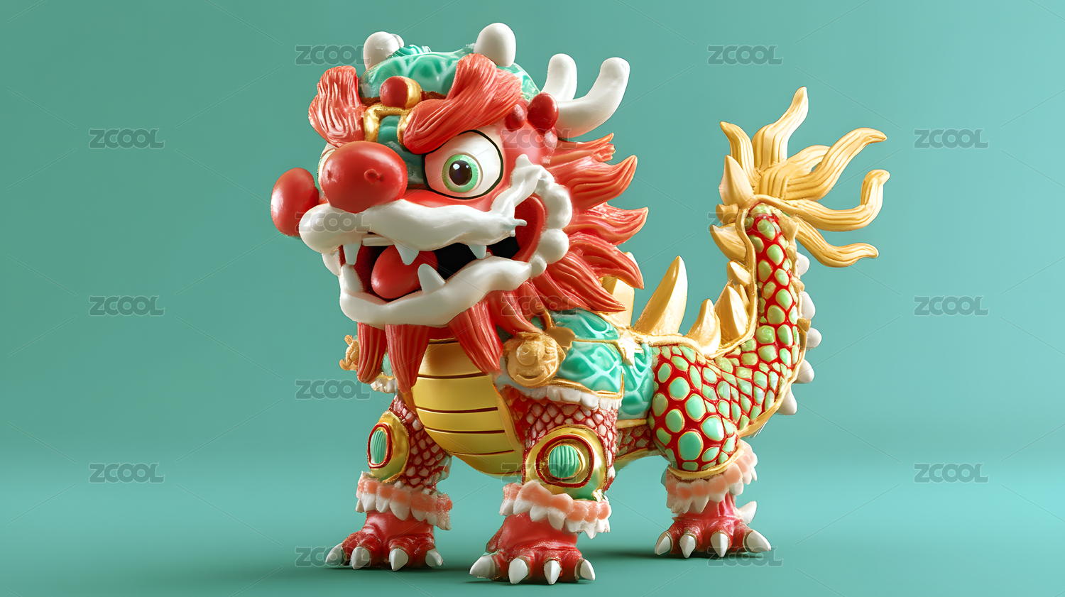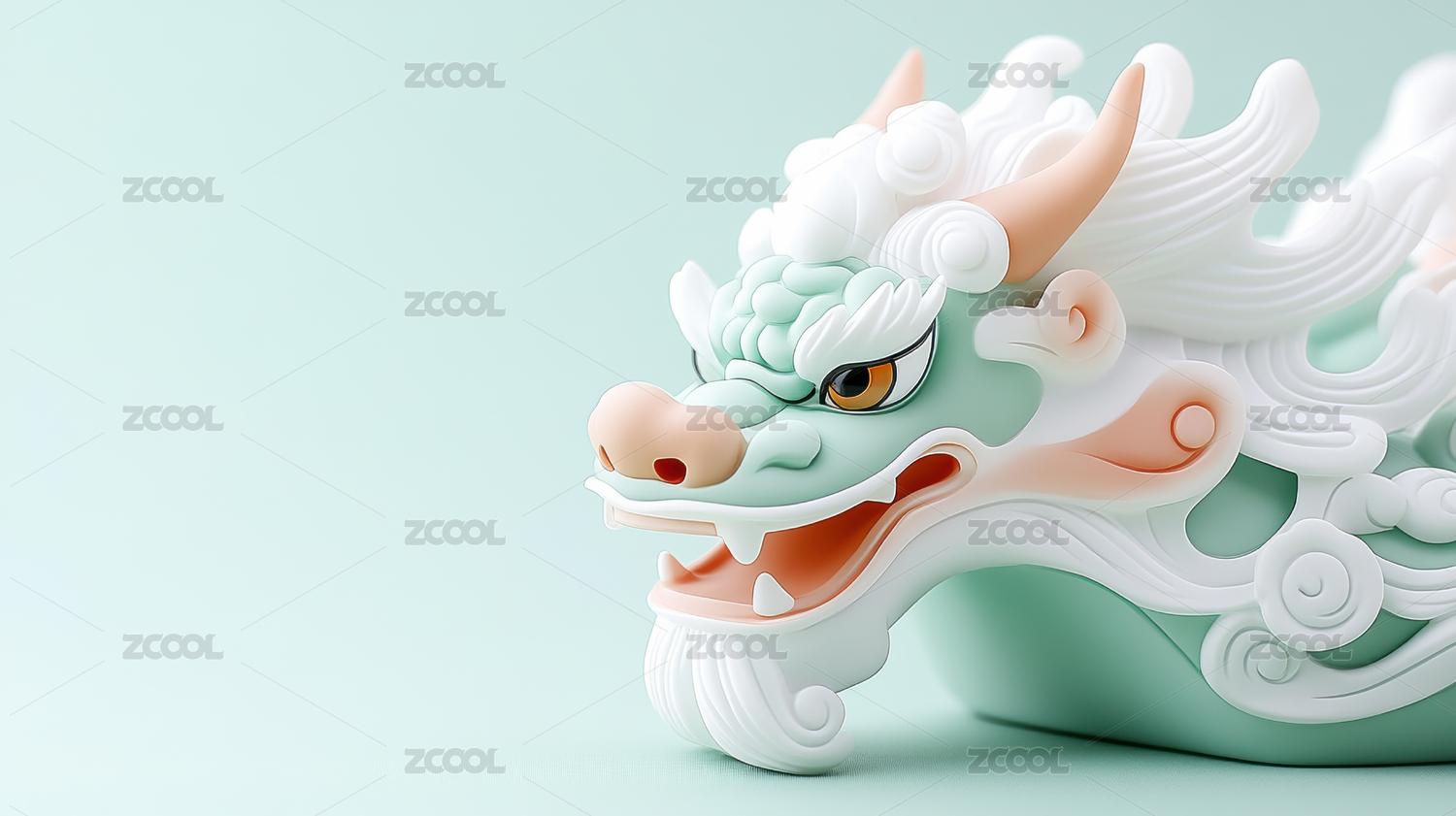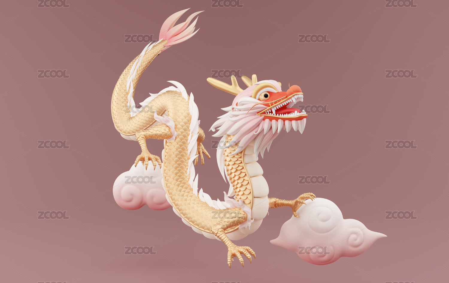 侧面盘旋在祥云上的三维卡通传统中国龙