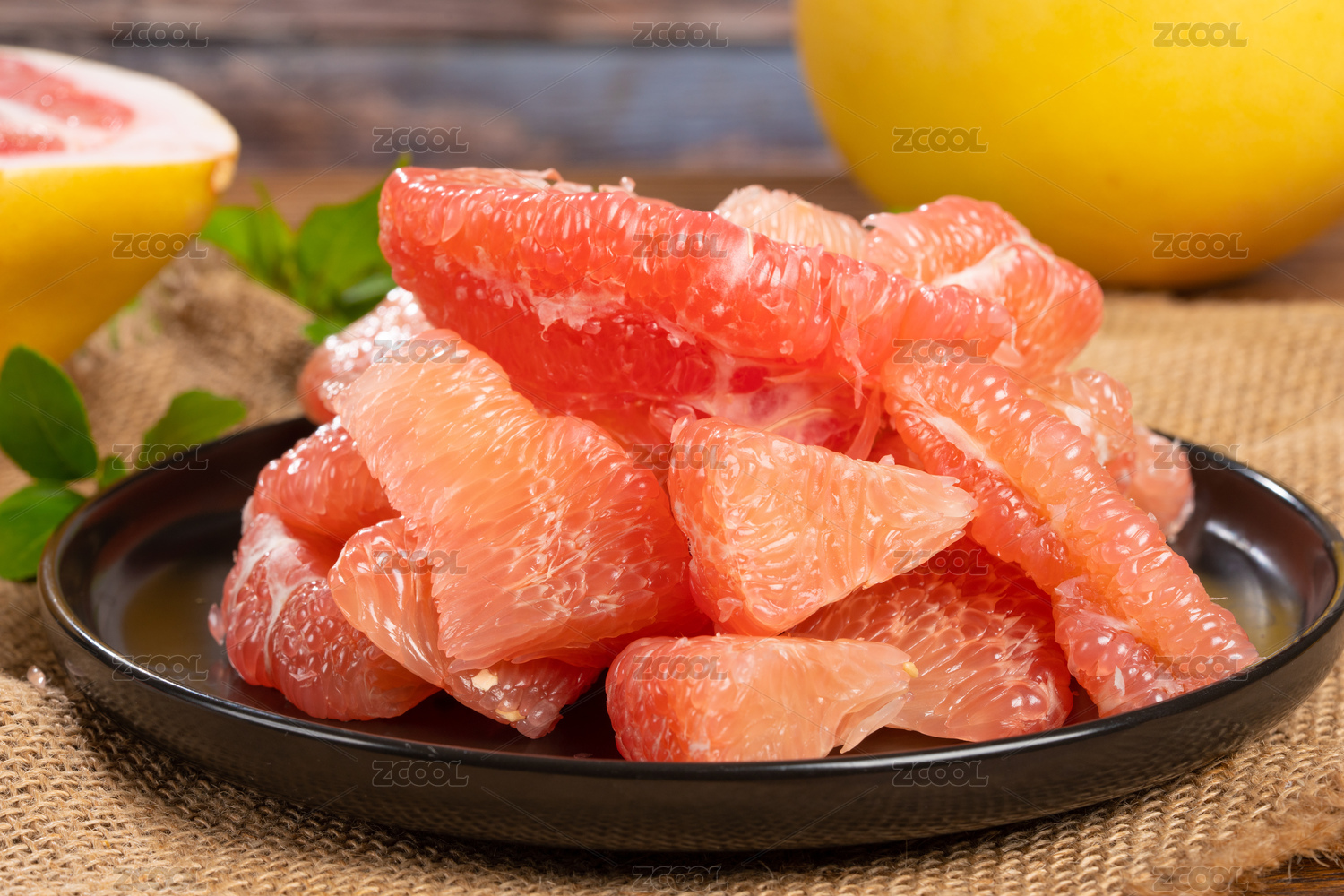 具有保健功能的红心蜜柚摆放在白色盘子中