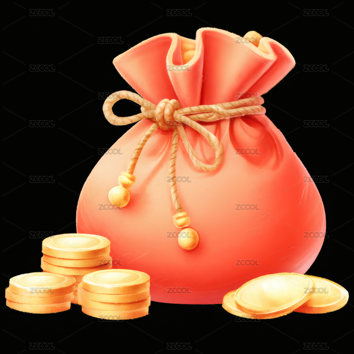 手绘,卡通,金币,财富,黄金,金融,薪酬,袋子,钱币,插画