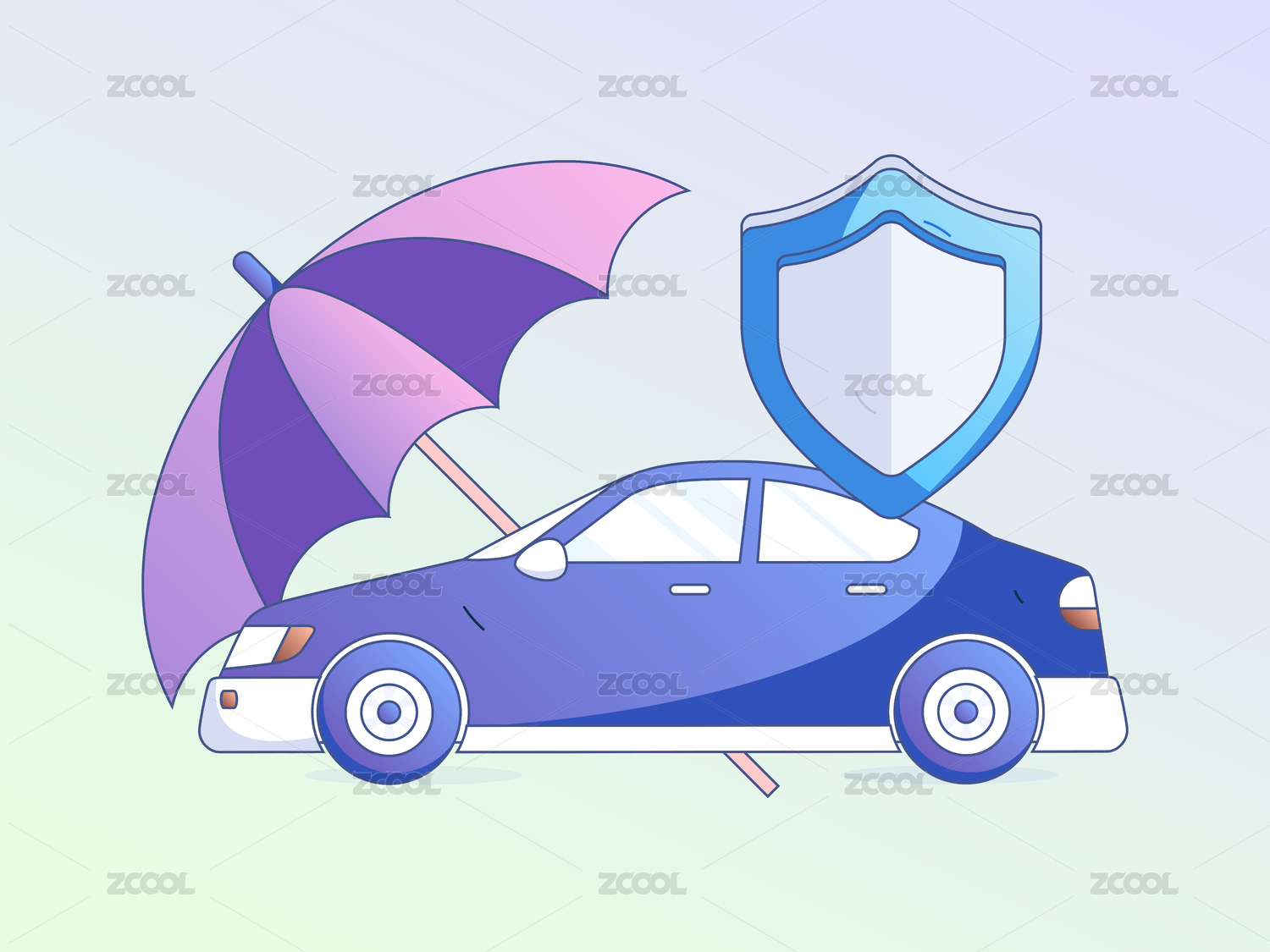 手撑伞保护汽车,安全概念车,乘车安全,汽车保险,保险公司概念矢量图