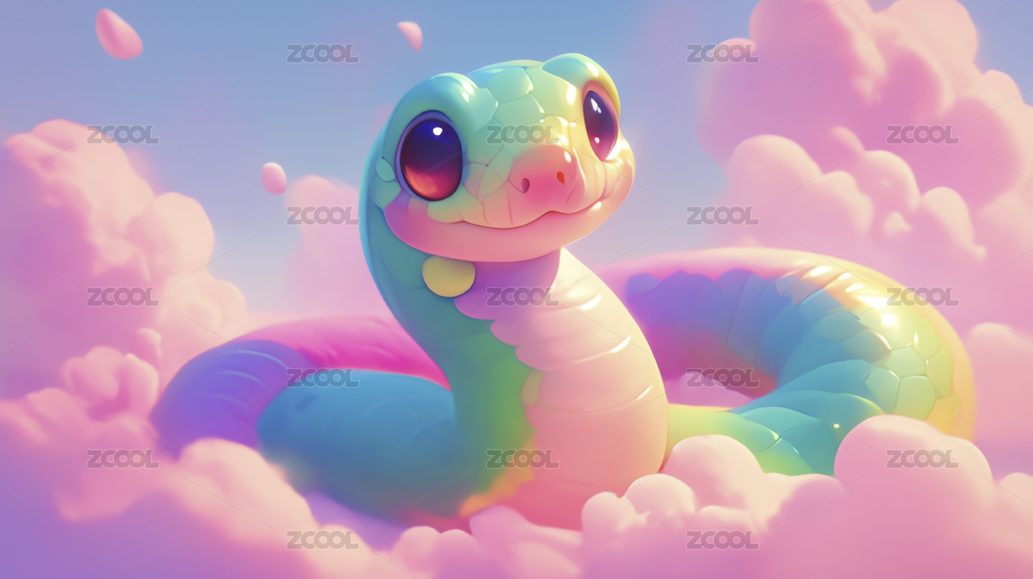 可爱,卡通,插画,三维,壁纸,光,柔和,梦幻,小蛇,云端