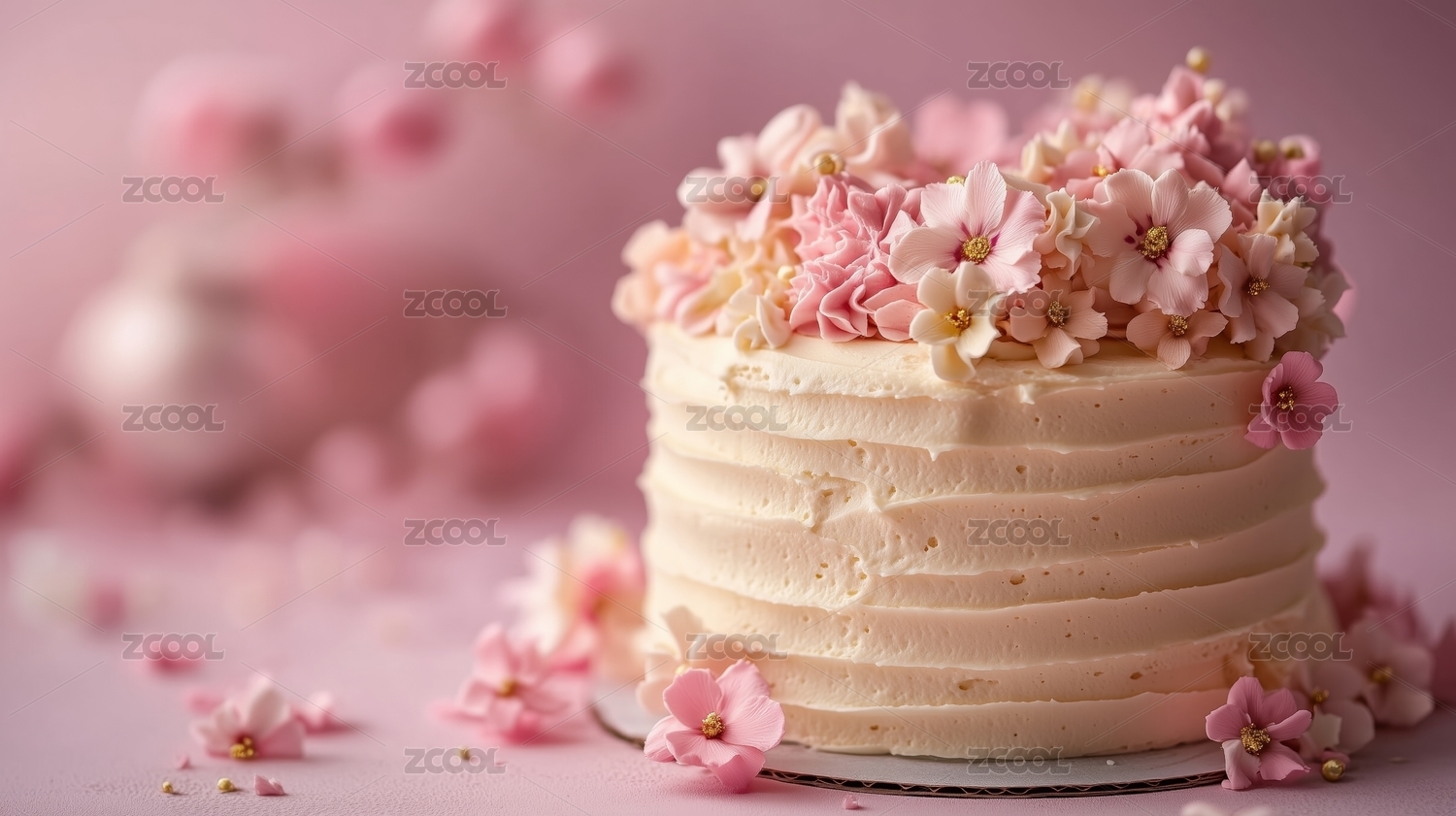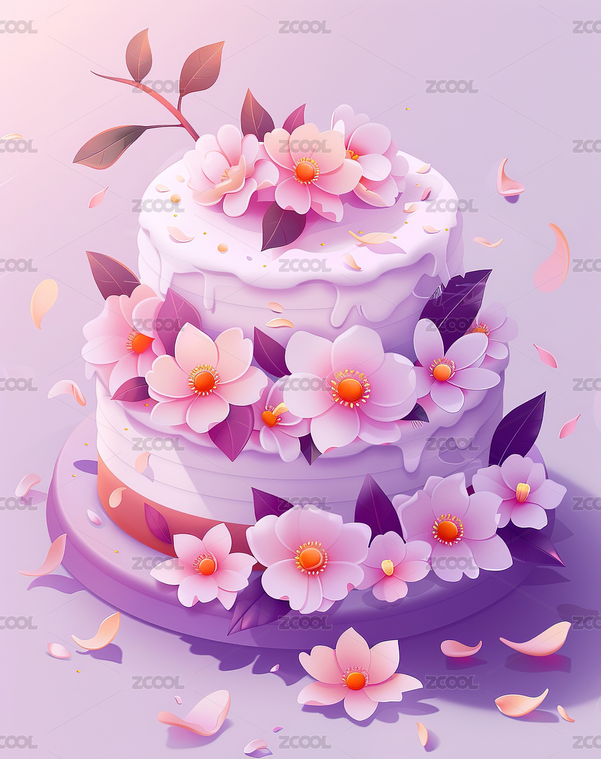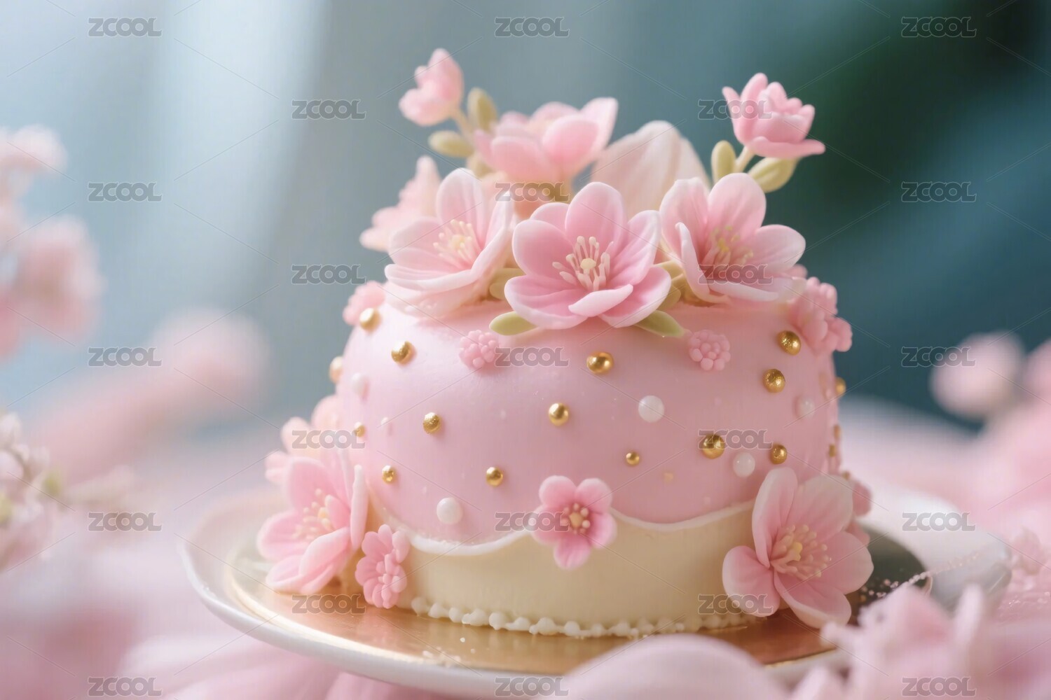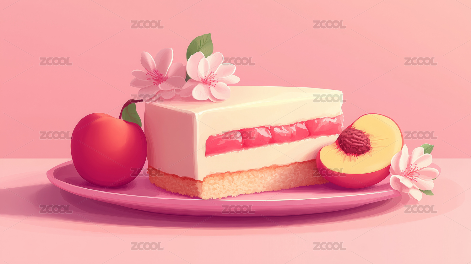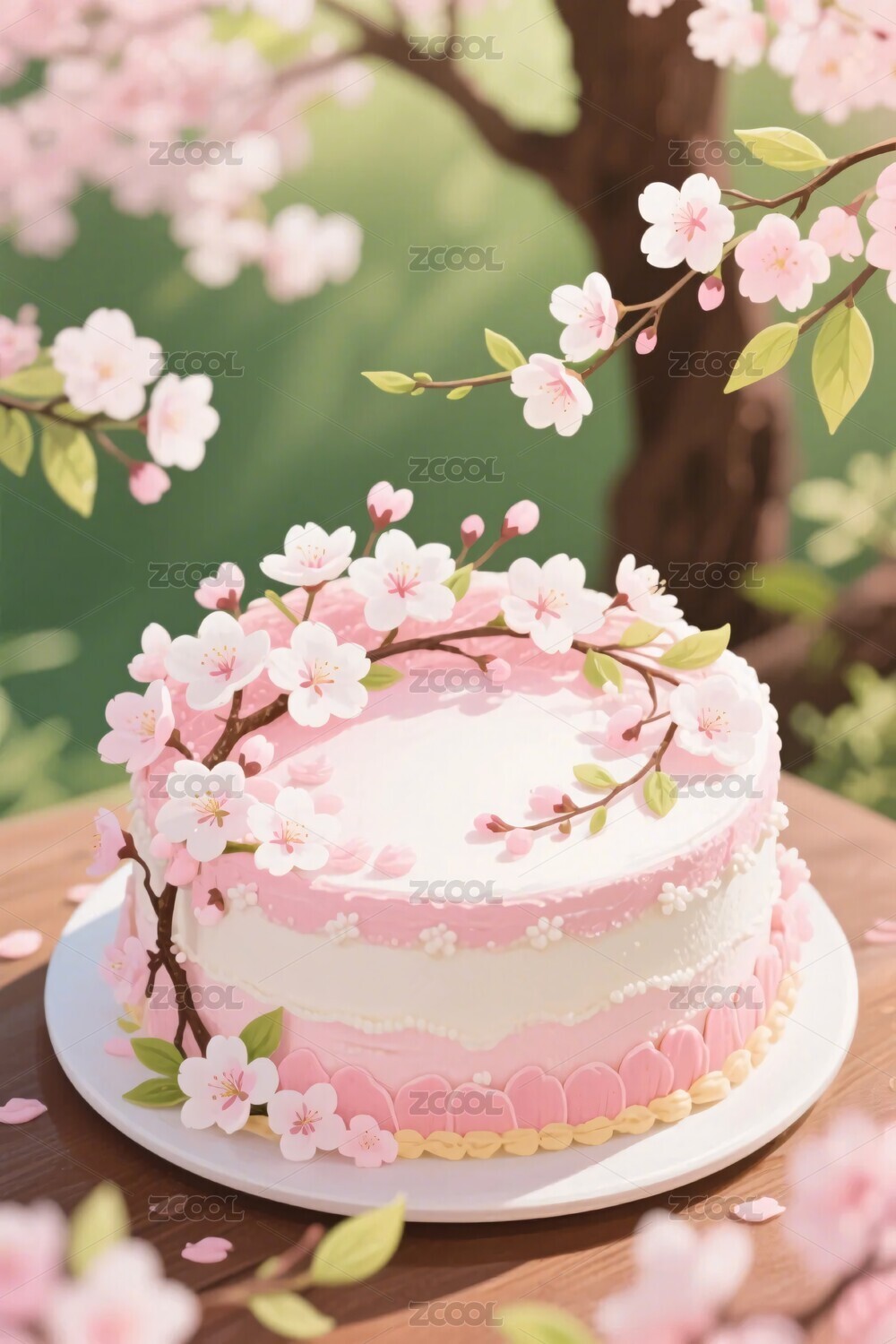插画,粉色,浪漫,春天,樱花,蛋糕,甜点,美味,节日,庆典
