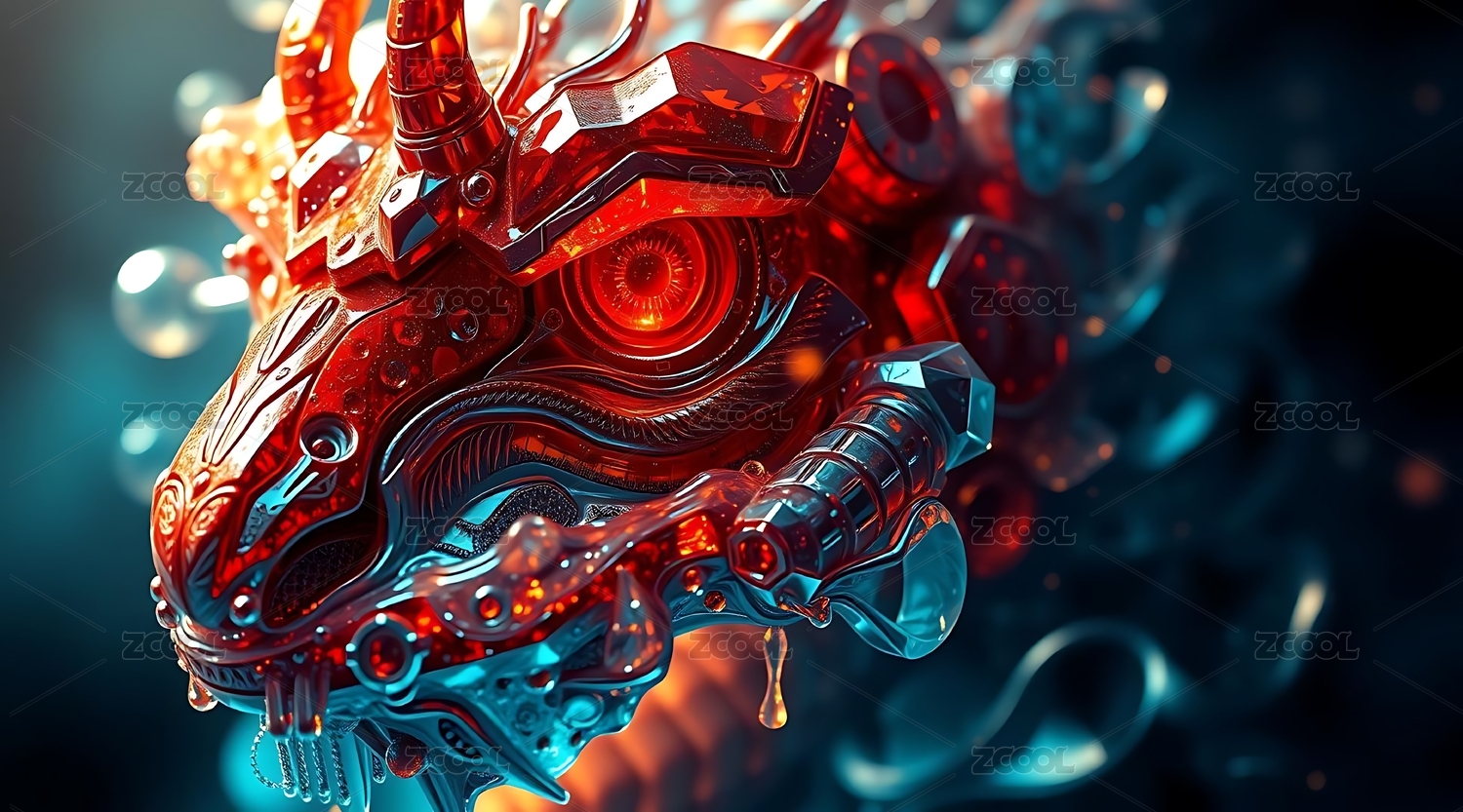 机械龙王赛博朋克故障风概念插图