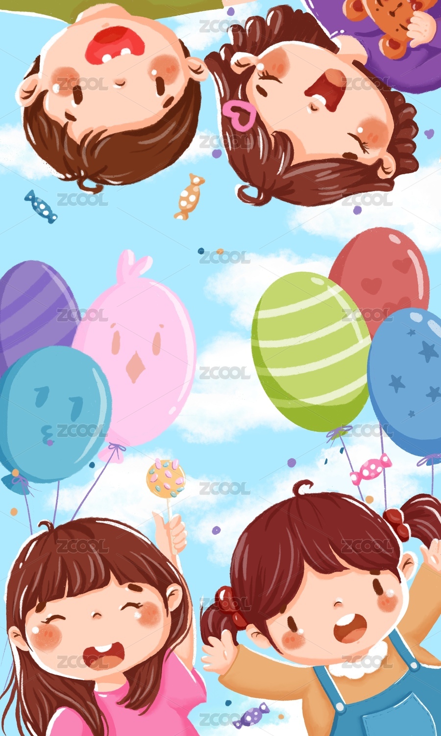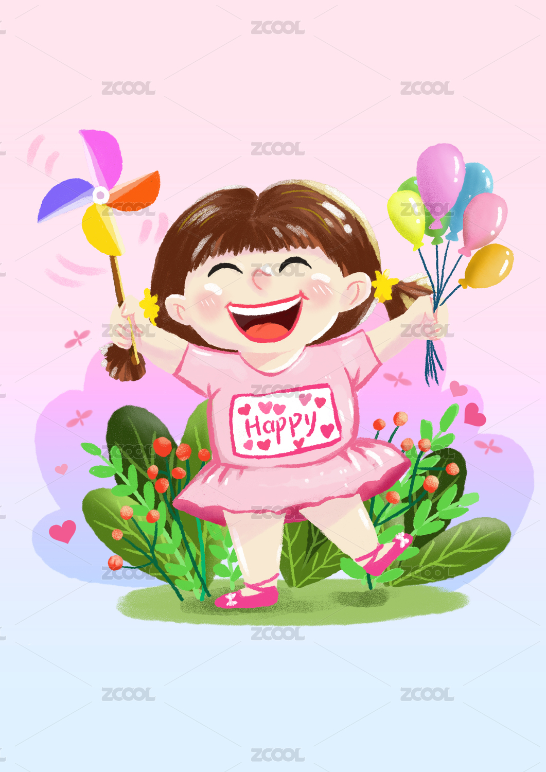 儿童节六一小朋友小孩子礼物插画玩耍梦想