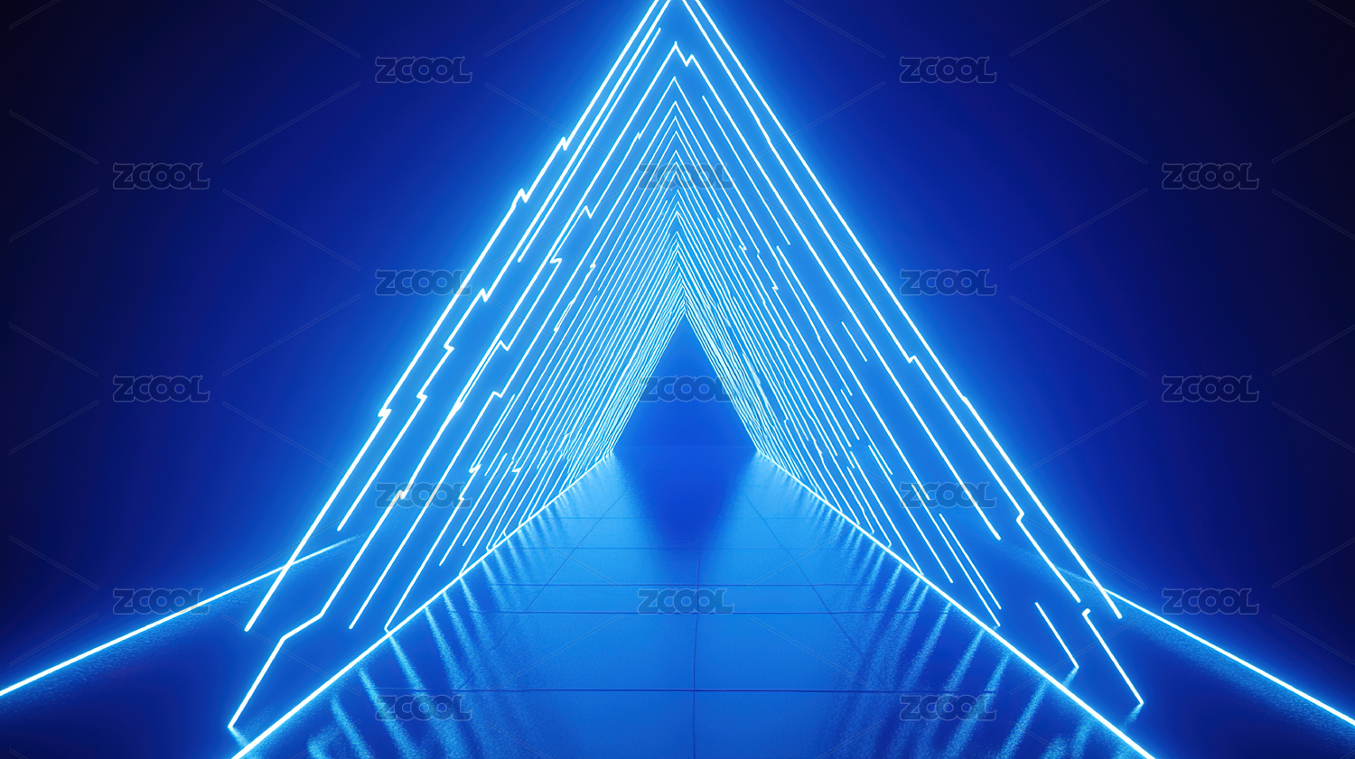 蓝色霓虹三角隧道