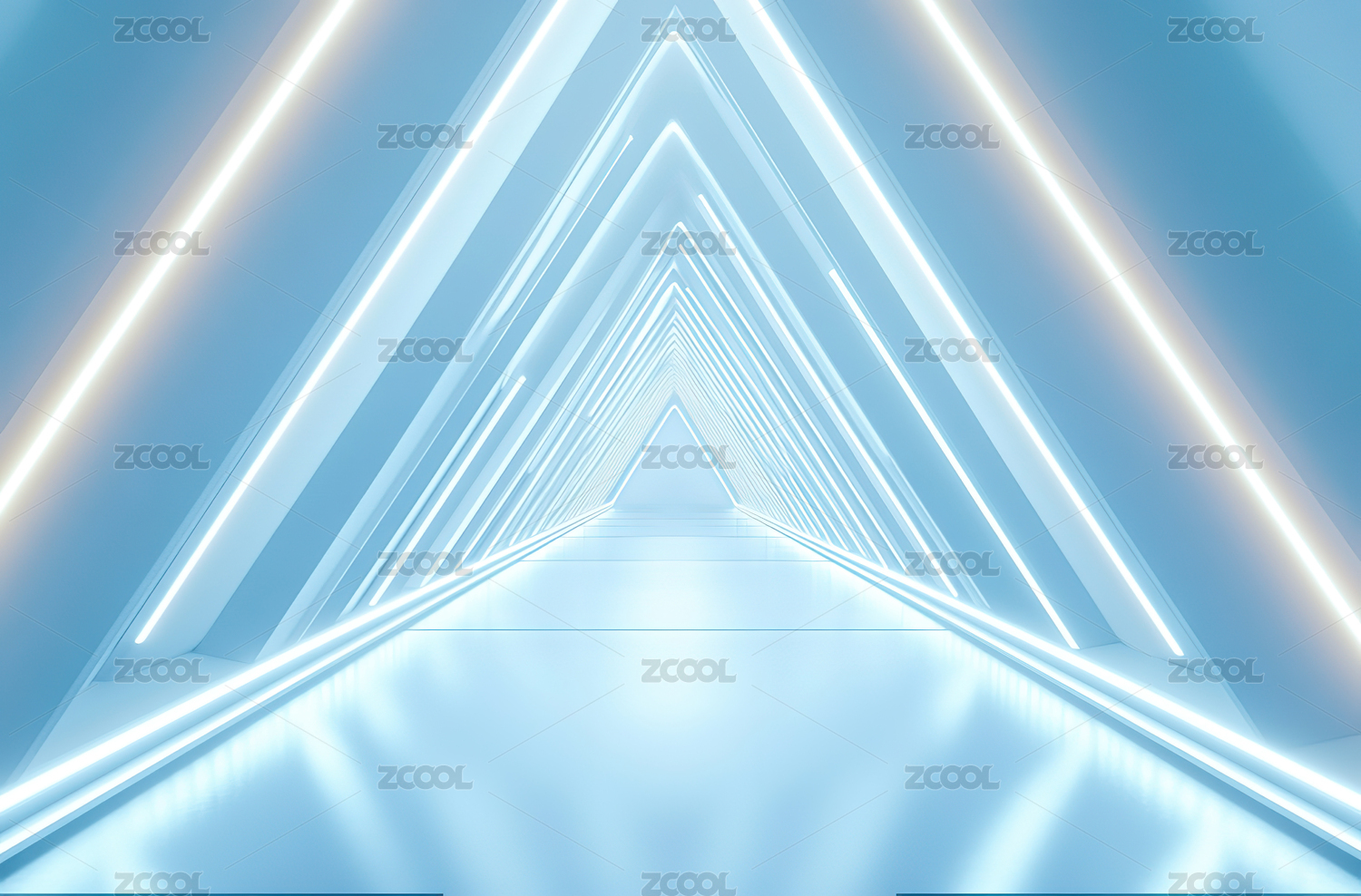 未来感蓝色霓虹三角隧道
