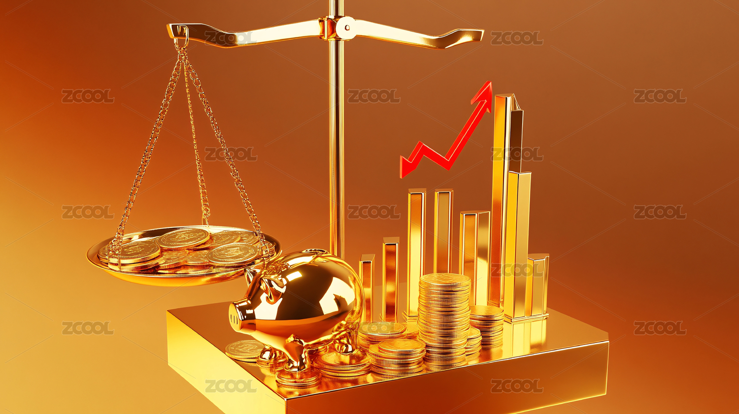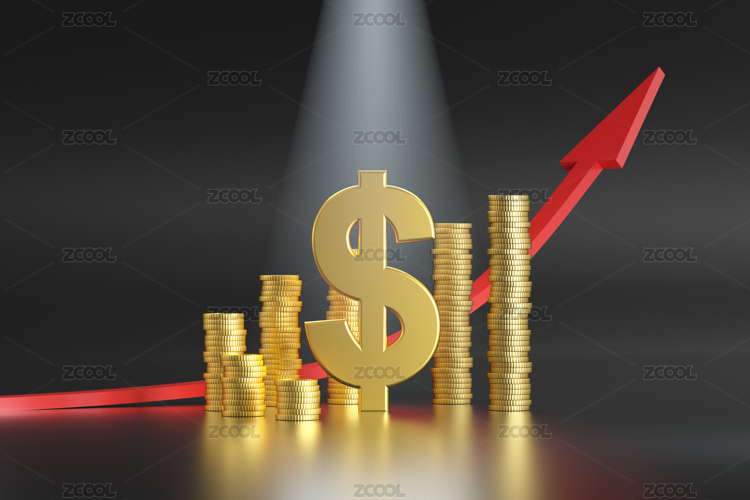 金色硬币与红色箭头象征经济增长