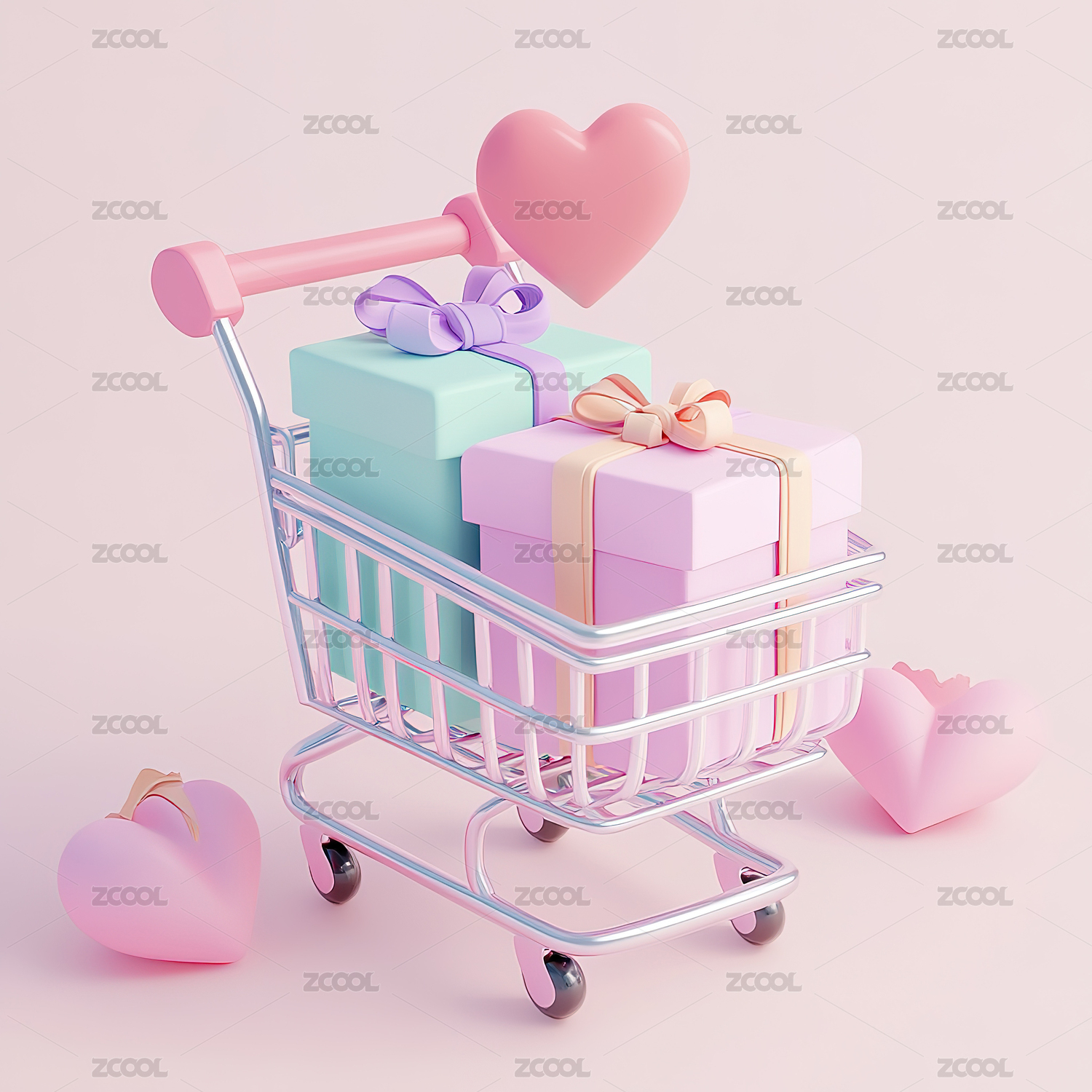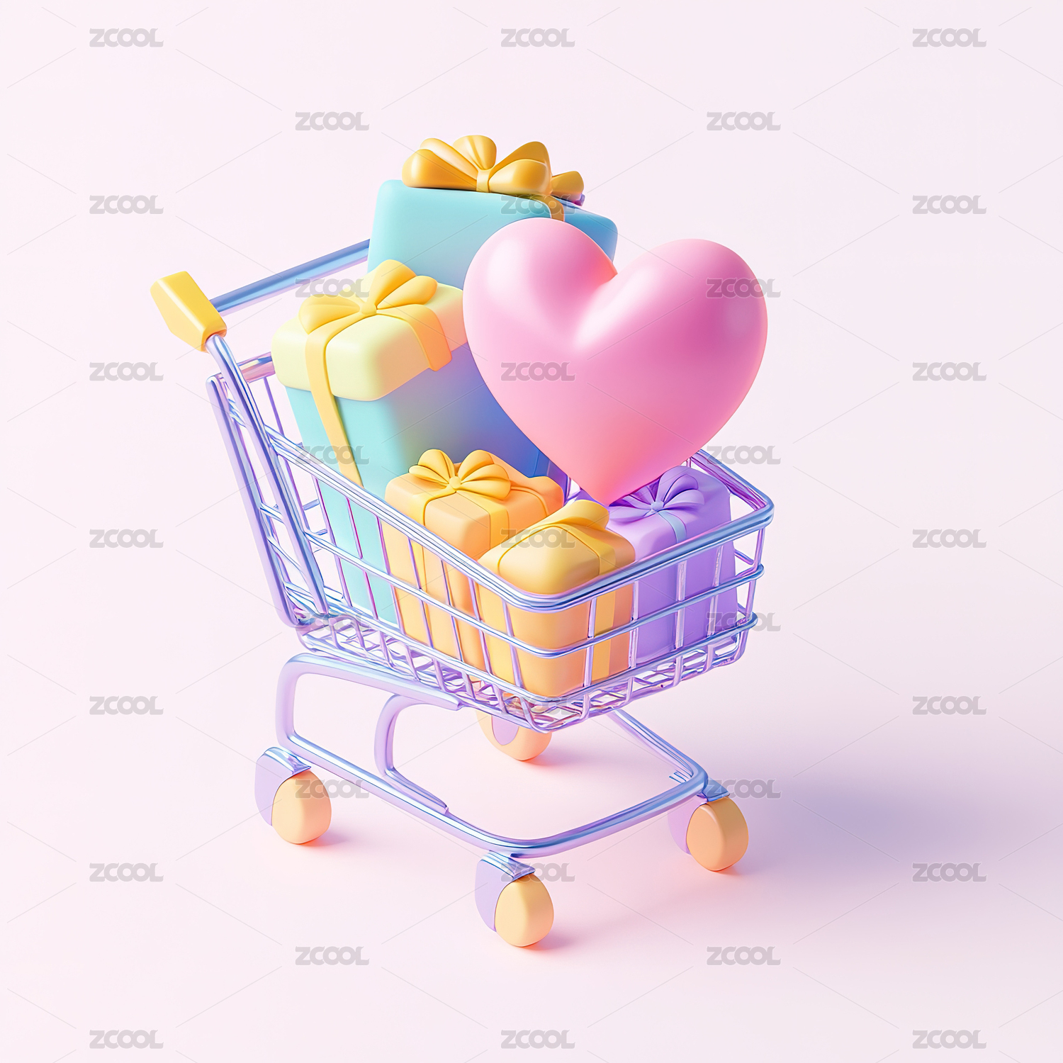 红色,蓝色,黄色,粉色,紫色,3D渲染,橙色,购物车,礼物,包装