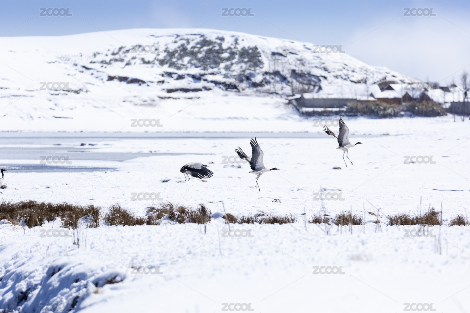 素材,背景,动物,野生动物,黑颈鹤,鸟类,候鸟,跳蹬河,蓝色水面,中国