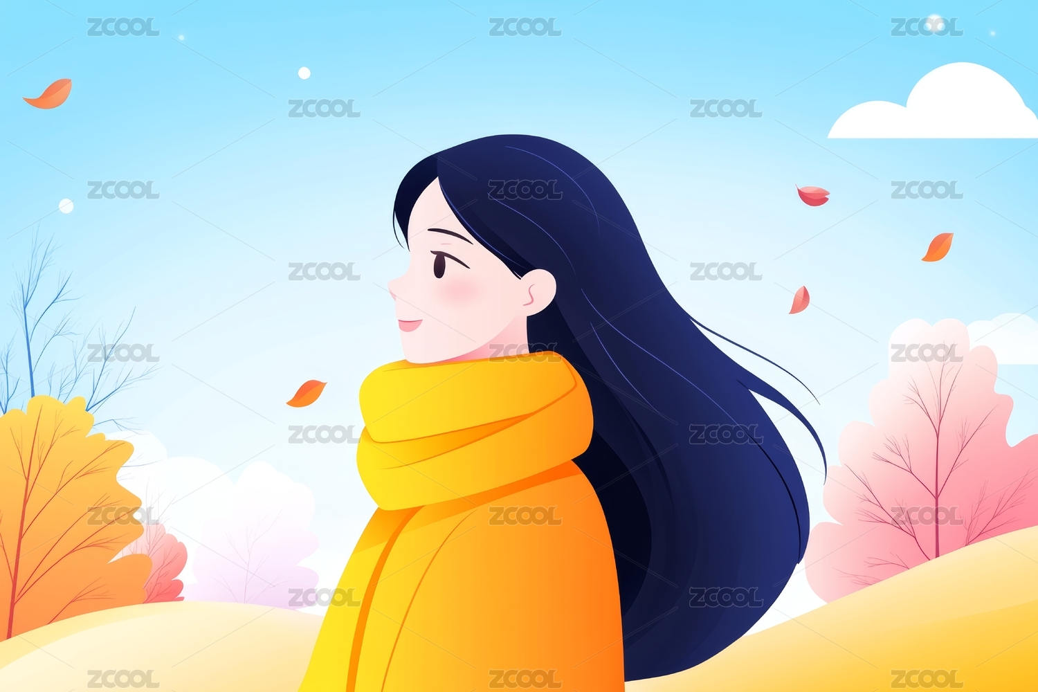 卡通女孩秋季秋天立秋二十四节气踏秋丰收