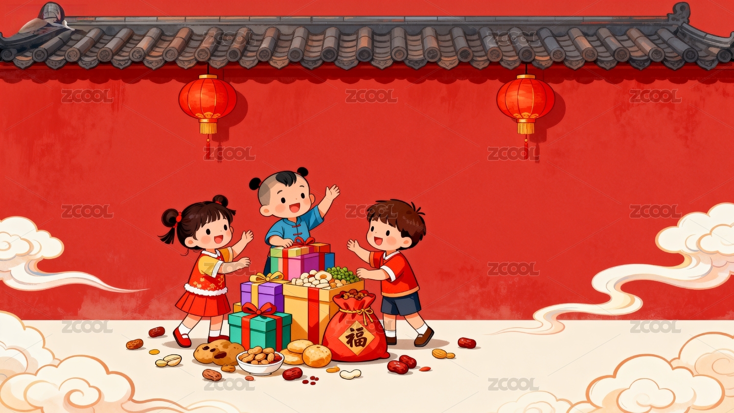 节气,人物,插画,儿童,福娃,家,拜年,新年,春节,年俗