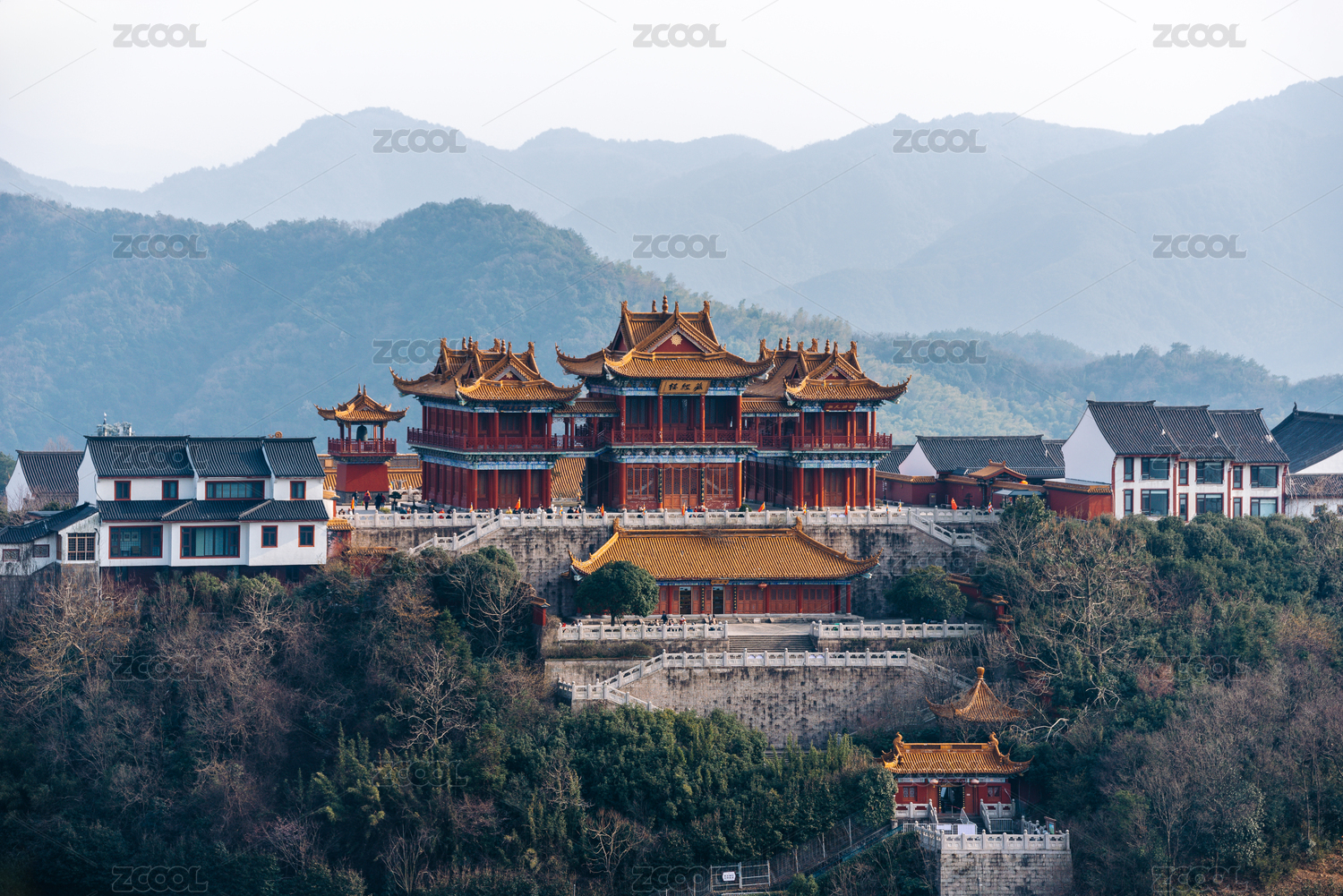 浙江绍兴会稽山兜率天景区龙华寺彩绘牌坊