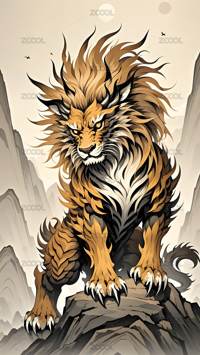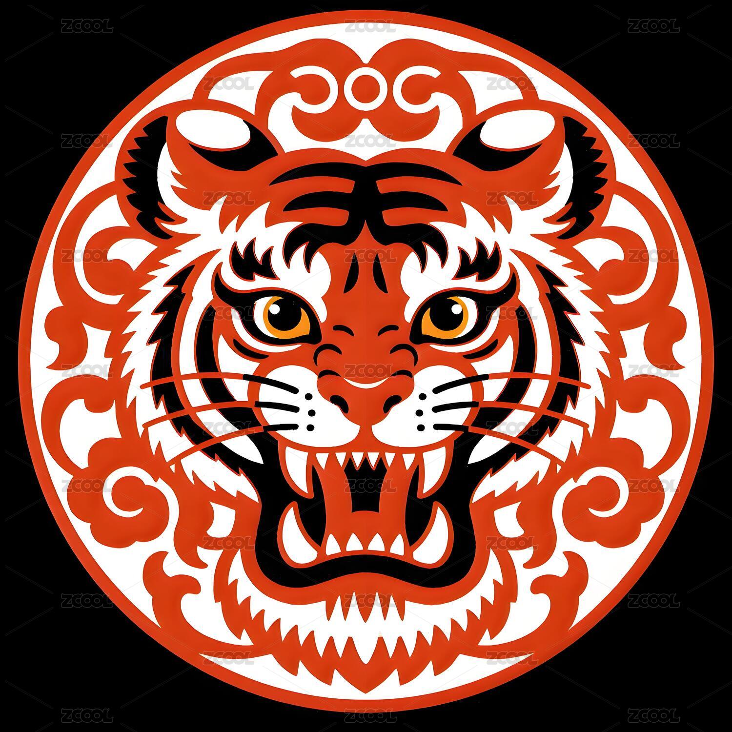 金色国潮十二生肖虎,传统装饰纹样卡通形象