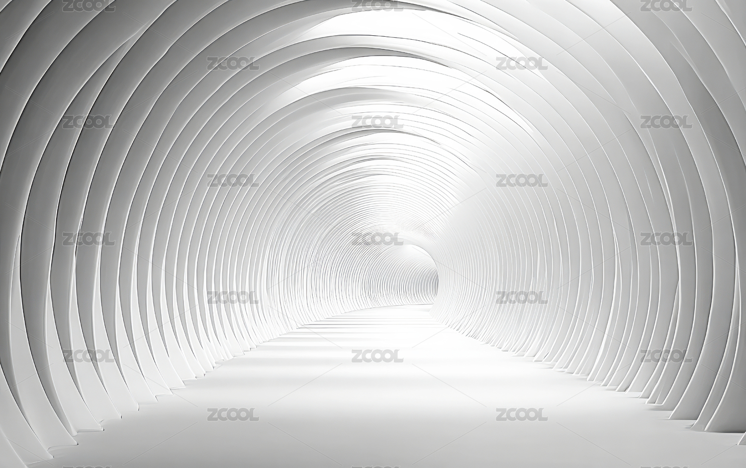 白色弧形几何隧道抽象图案