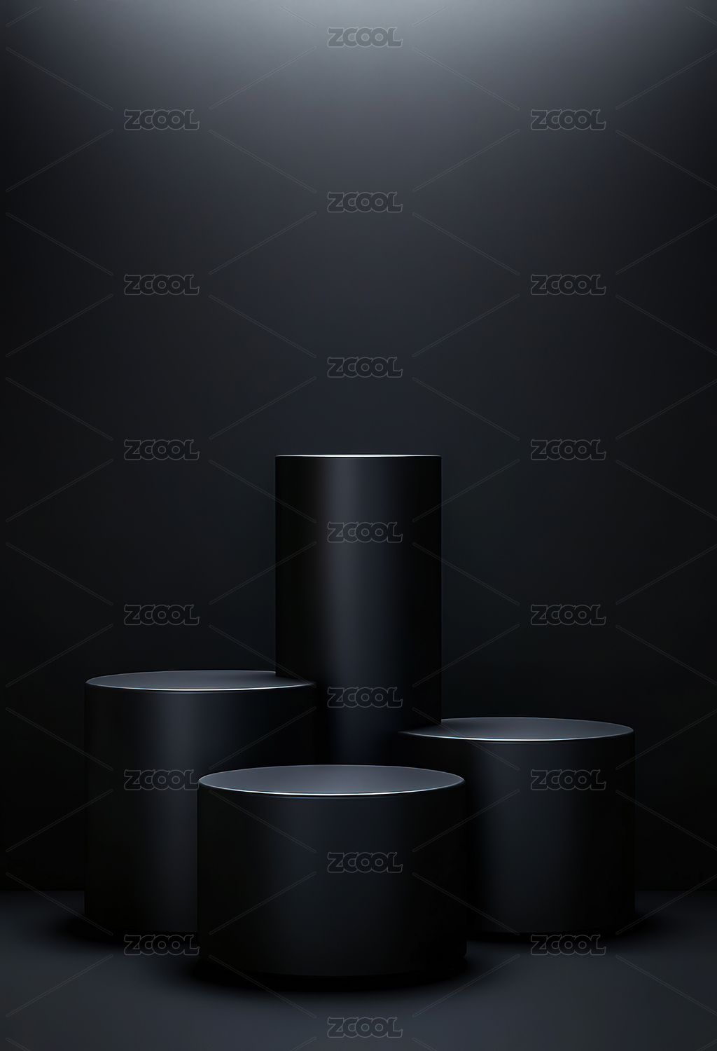 深蓝色背景下的极简圆柱体展示