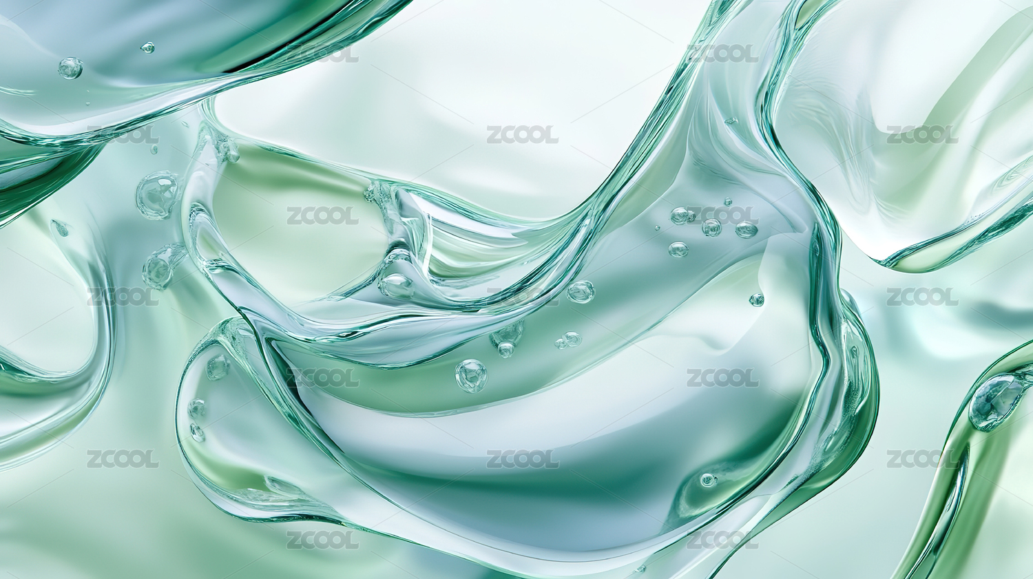 绿色抽象流动溅起水波纹浪花清新简约背景