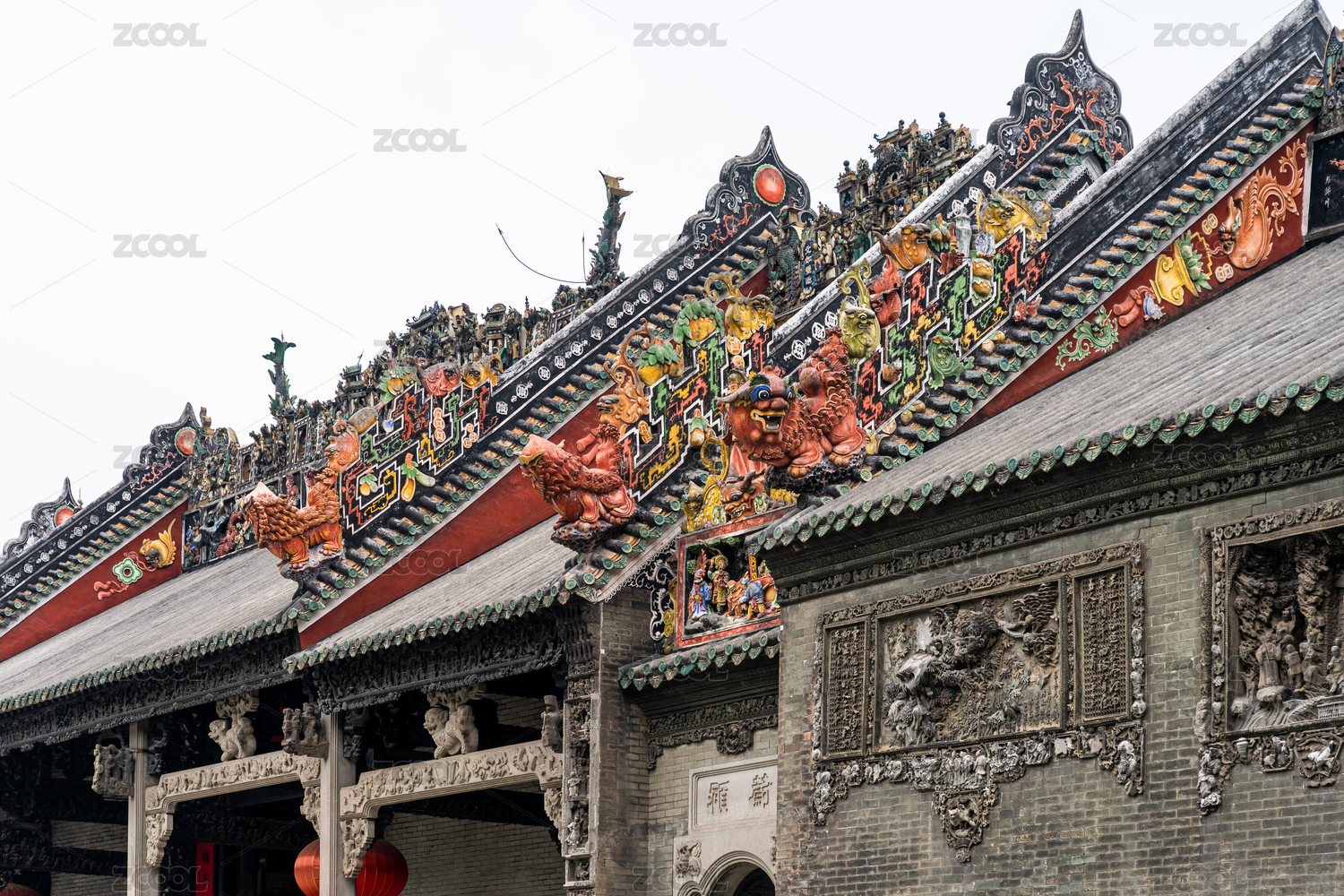 中国广州陈家祠古建筑石雕砖雕和陶塑
