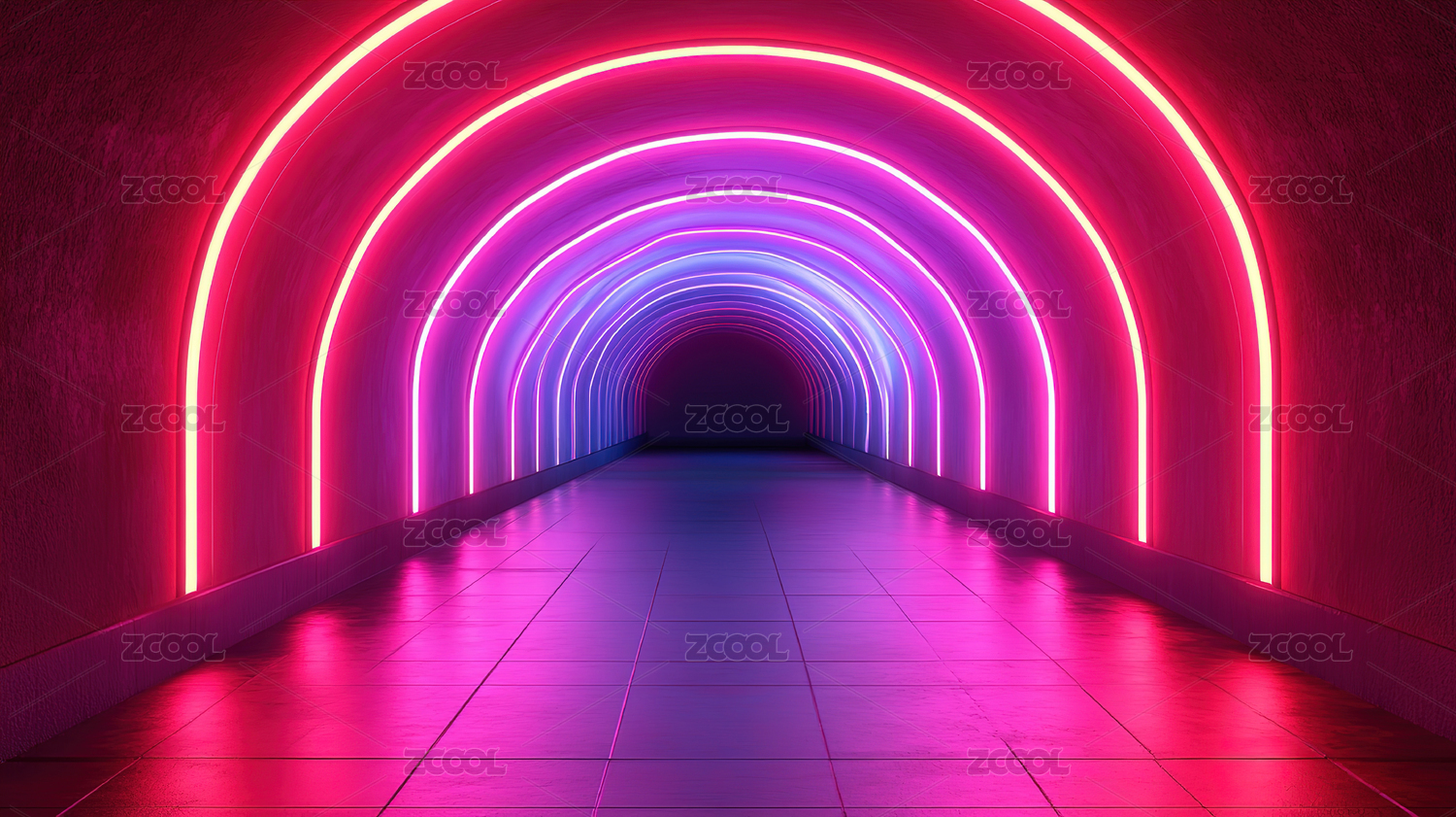 霓虹灯迷幻的空旷隧道