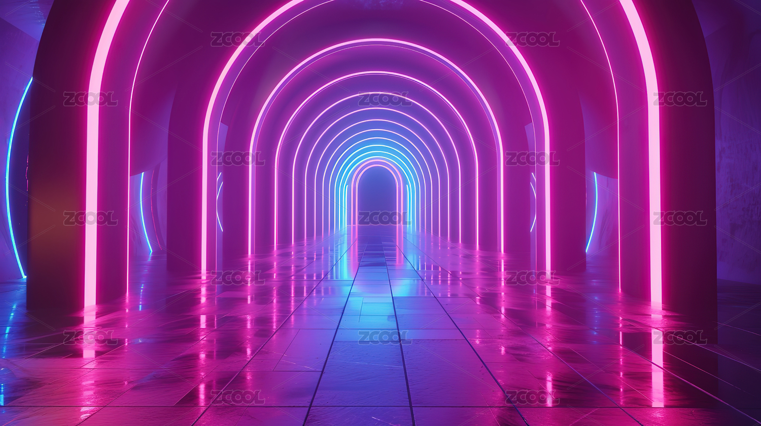 霓虹灯隧道蓝紫交织的未来感通道