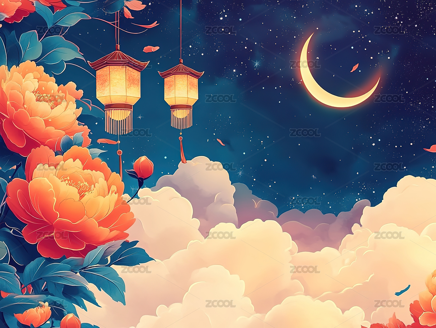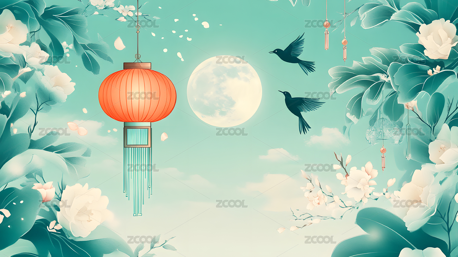 插画,叶子,自然,户外,夜晚,森林,风景,中秋节,月亮,树