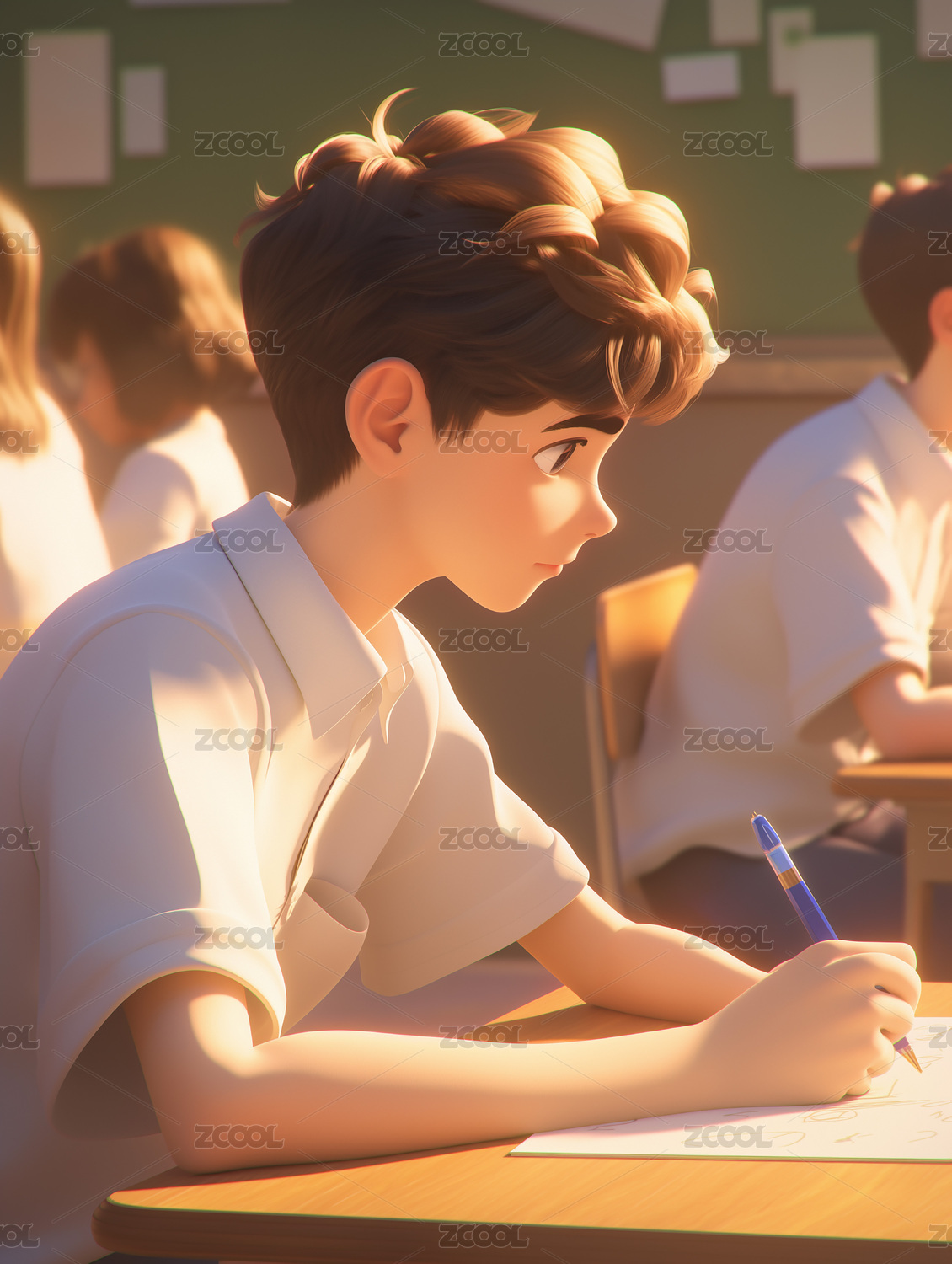 教室,男孩,学生,中学生,小学生,学习,逆光,插画