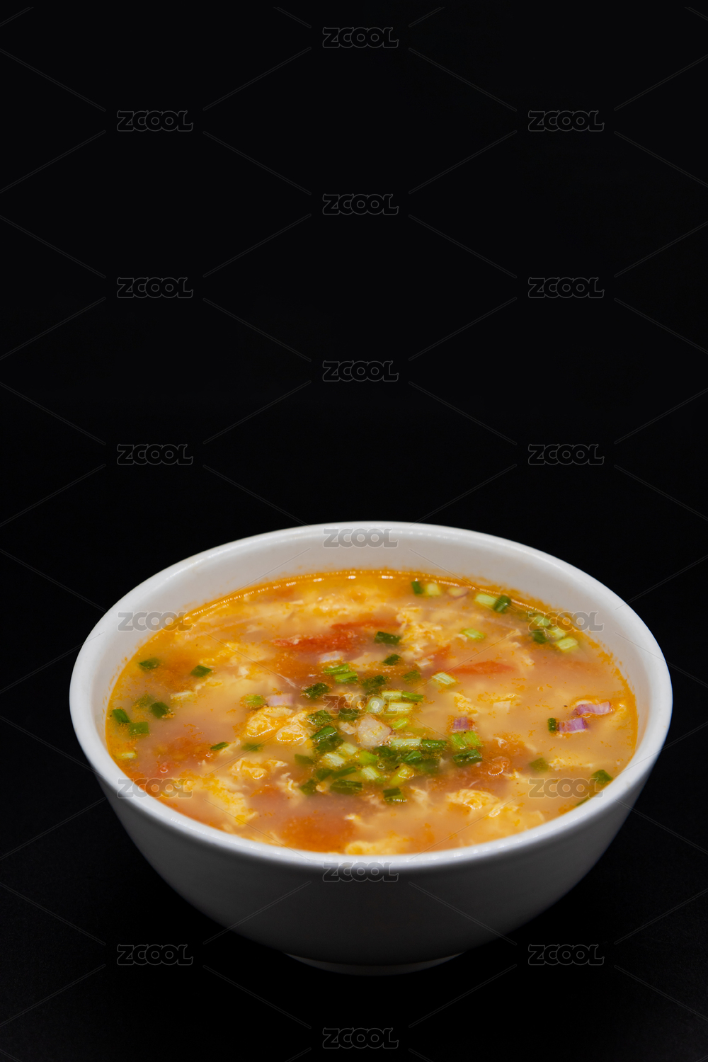 黑色背景一碗西红柿蛋花汤