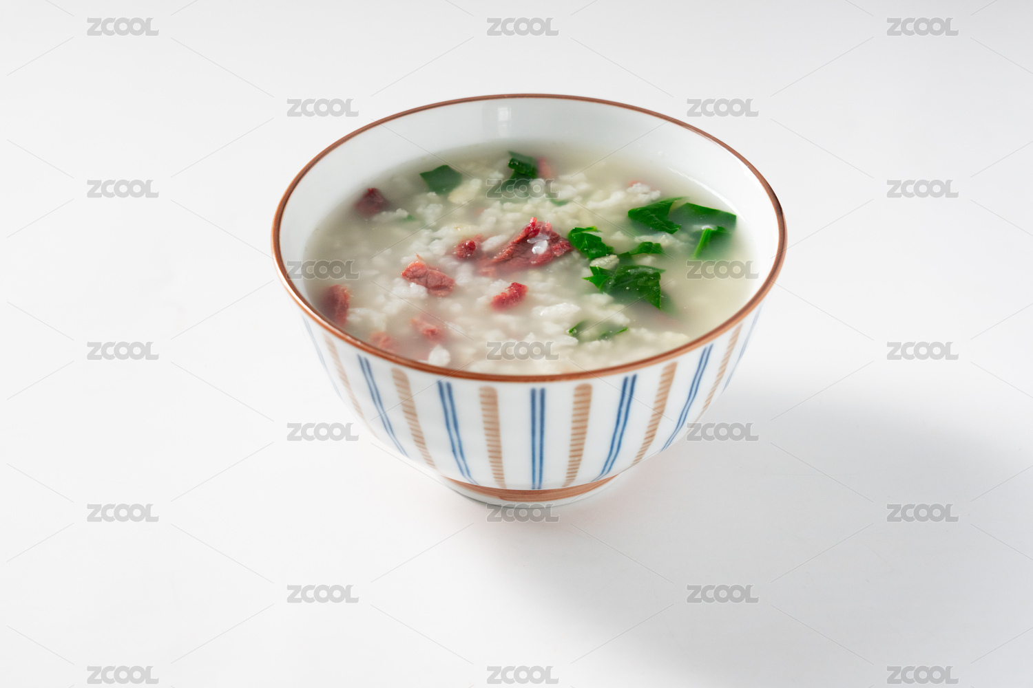 白色背景粤式传统柴鱼花生粥